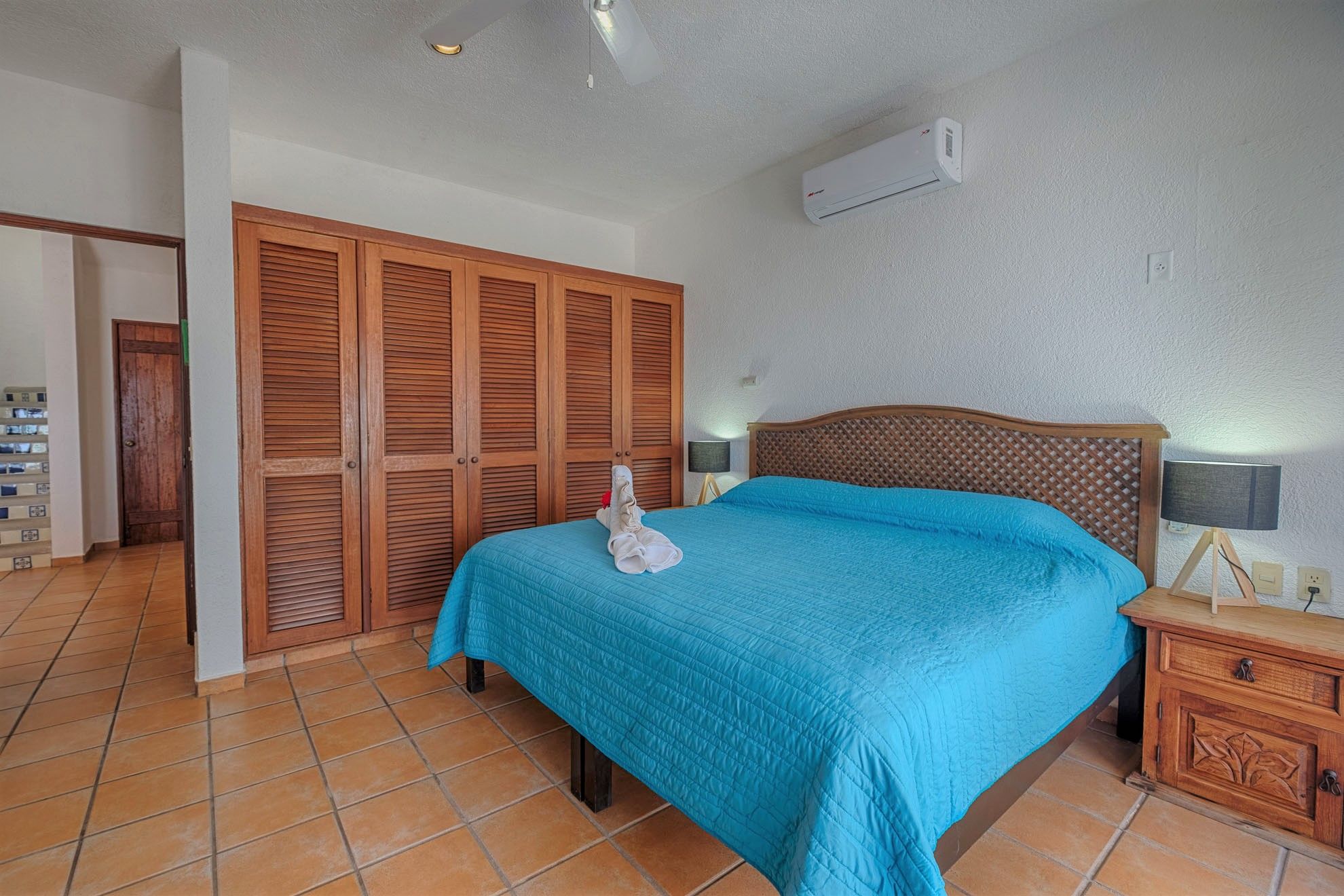 • Upper-level primary bedroom with a king bed.