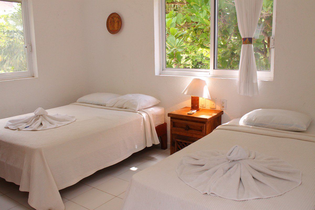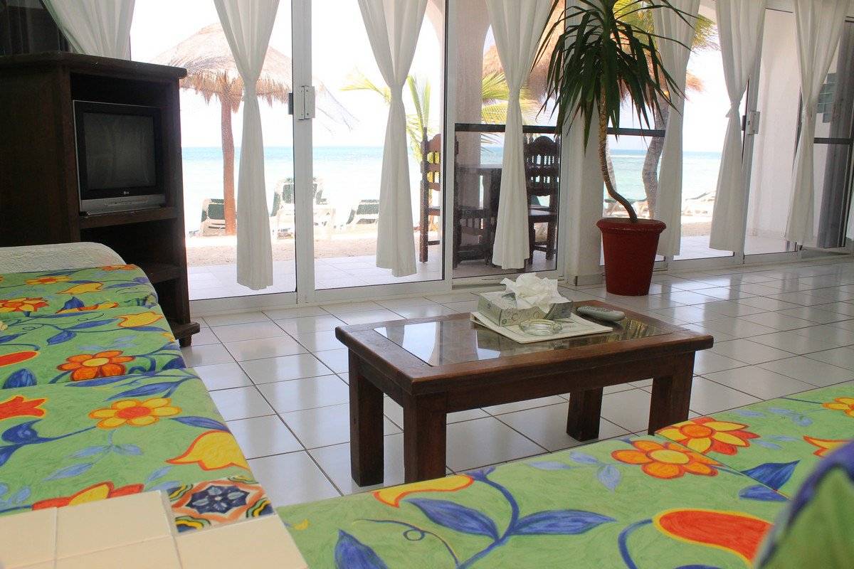 Del Sol Beachfront Condos feature 2-bedroom suite condos. Each beachfront condo is fully air-conditioned and comes with a complete kitchen, living and dining areas, airy bedrooms and large oceanfront balconies. Each terrace has an authentic Mayan hammock, perfect for taking a nap during your afternoon siesta.