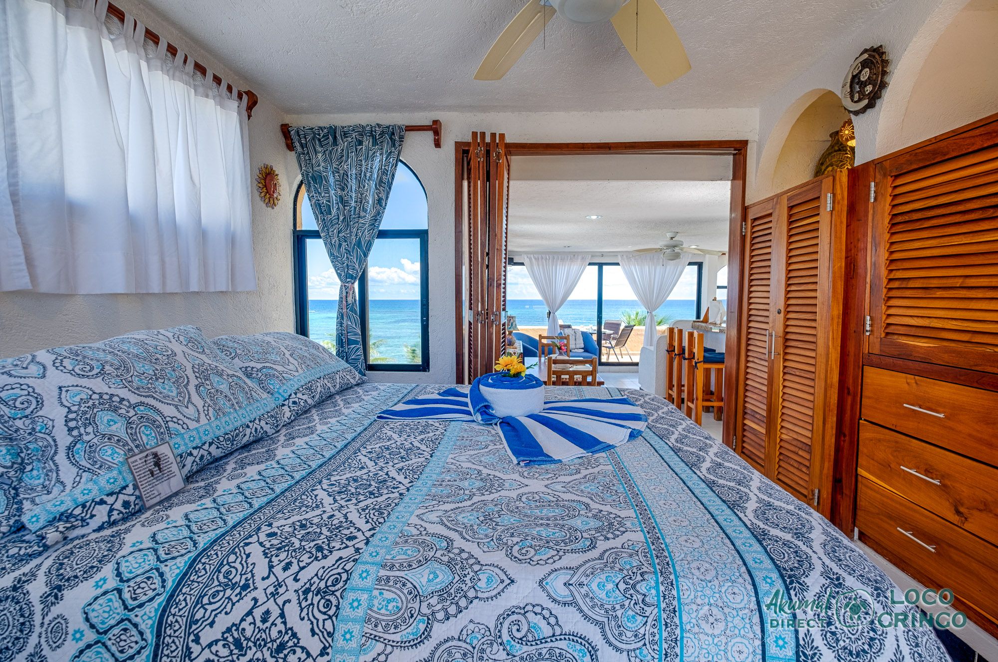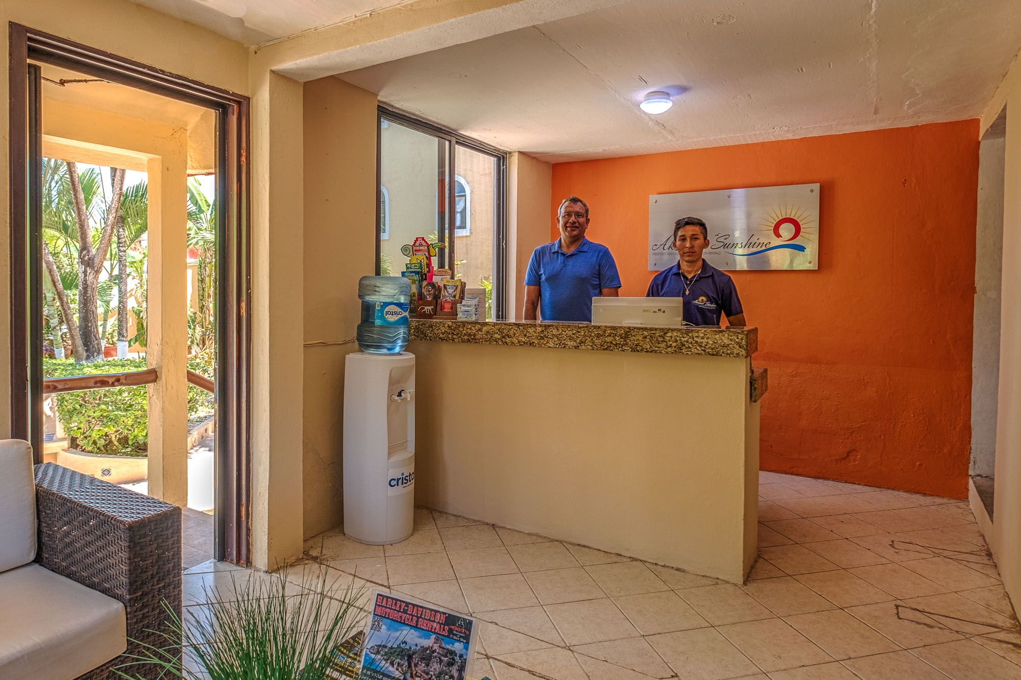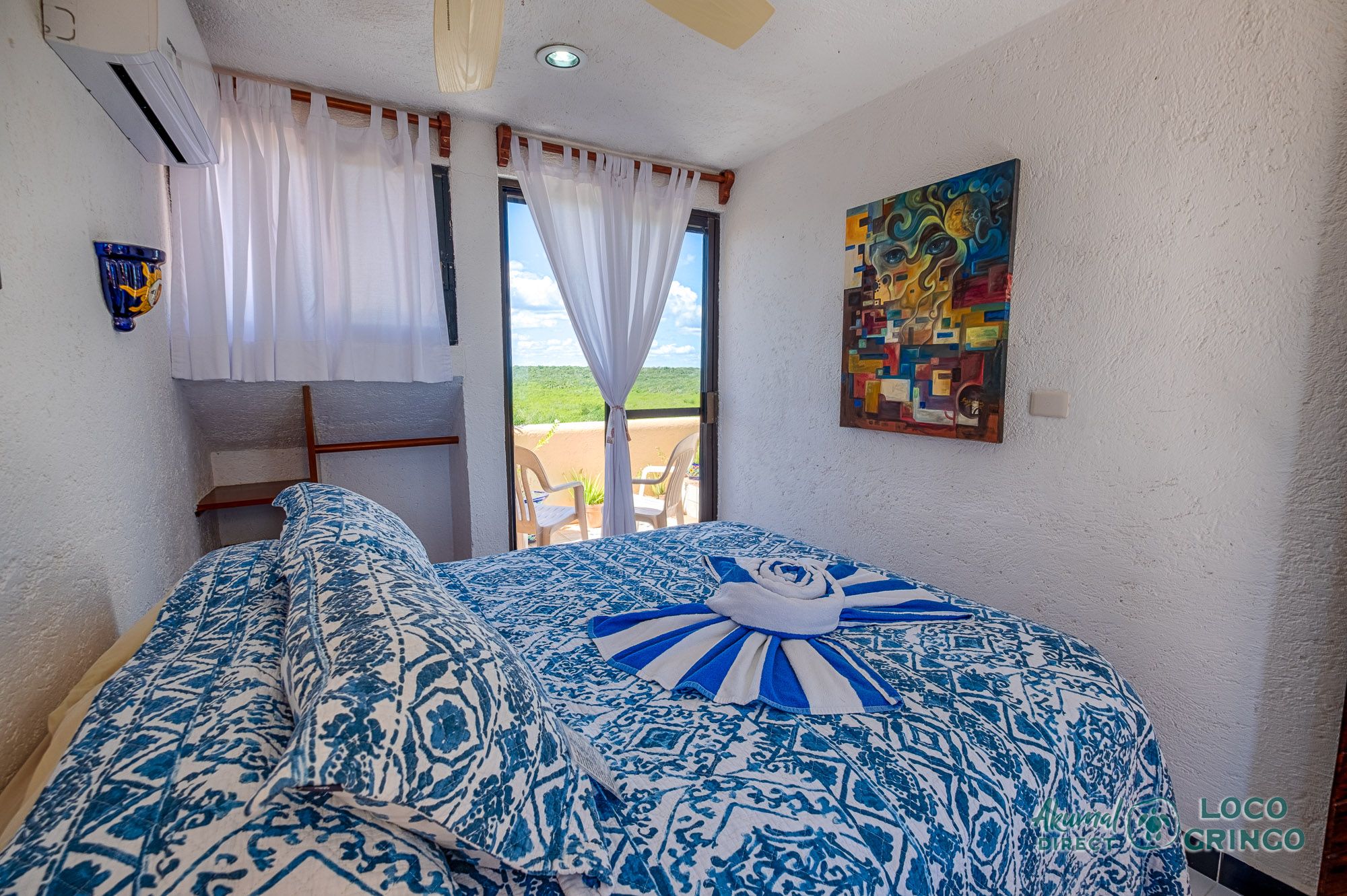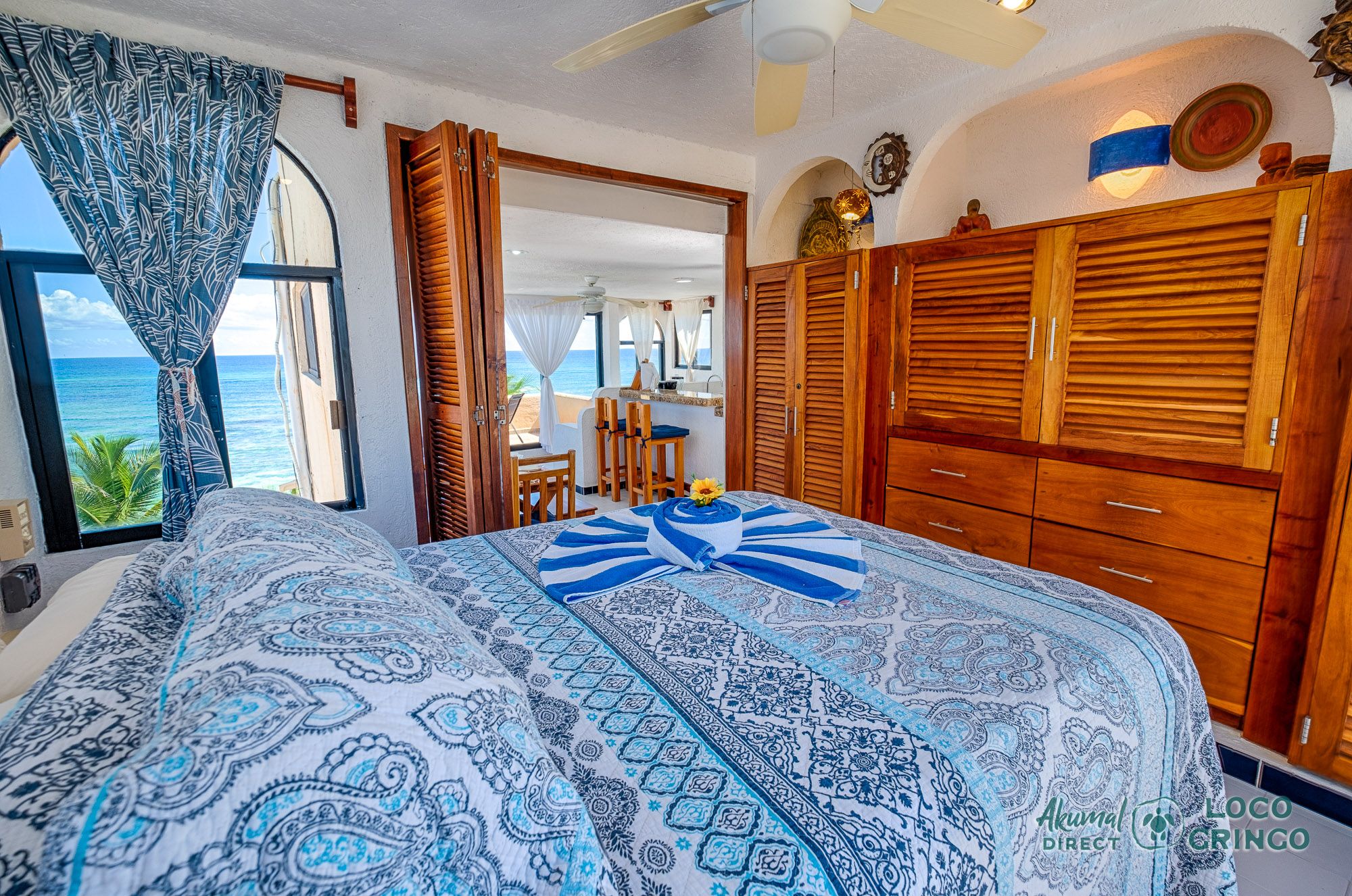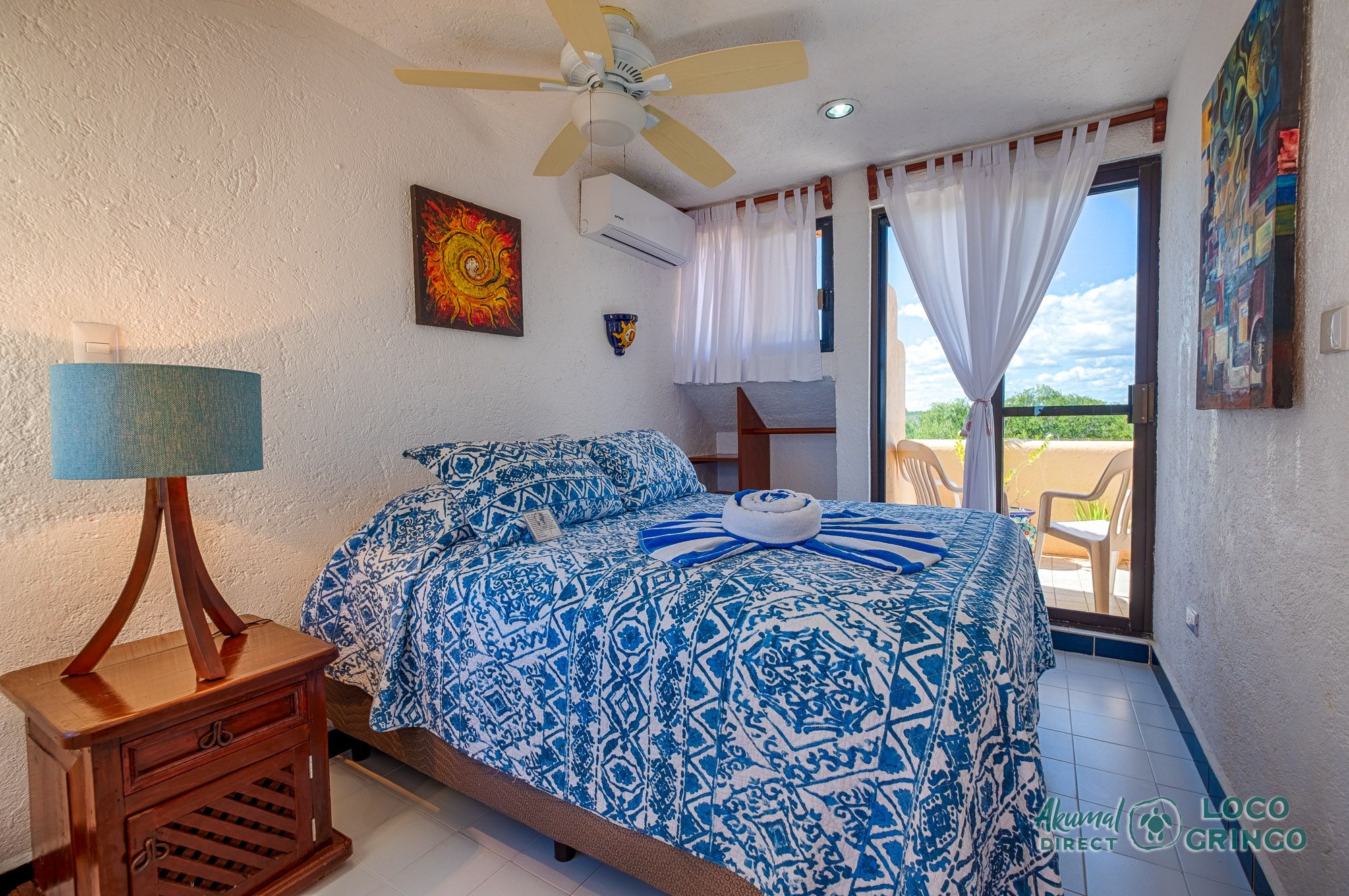 We had a wonderful experience with Akumal Direct. Everything was easy. We arrived after hours and the night security gave us the key and let us in. The unit was cleaned daily while we were out, and towels made fresh when wet or dirty. The view was spectacular from balconies on both the sea side and jungle side, for both amazing sunrise and sunset views. The A/C worked well to cool the unit, and windows let in lots of light. We ate every meal on the east balcony watching the birds and sea. The only thing to note was that, when a storm blew through, rain water came pouring in through the doors and windows despite being completely shut. We had to sweep the water towards vents built into the wall, and the ceiling fans dried the floors within a half hour, no damage done. Ants were also into everything, so keep food in sealed containers. Despite these little glitches, the stay was marvelous.