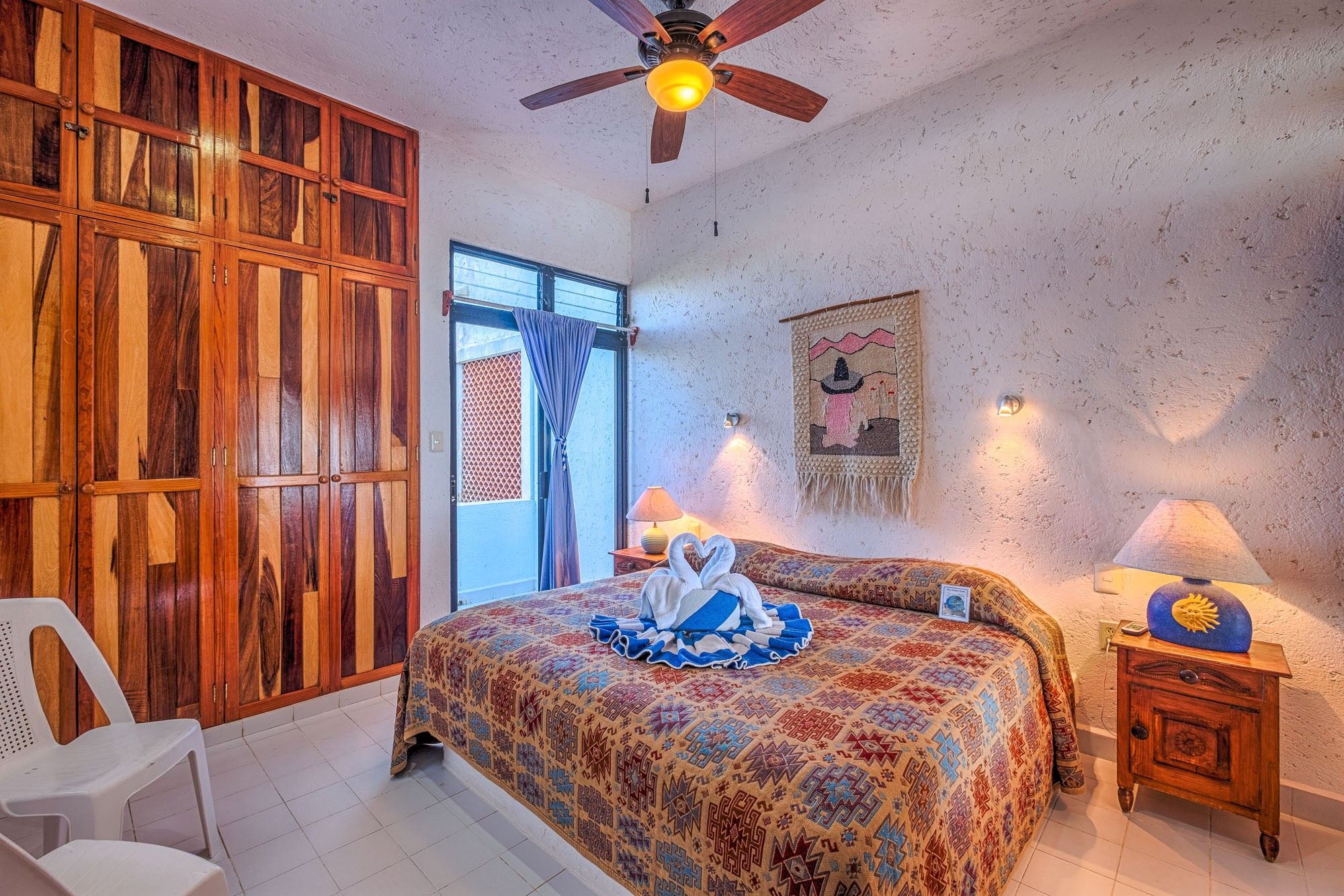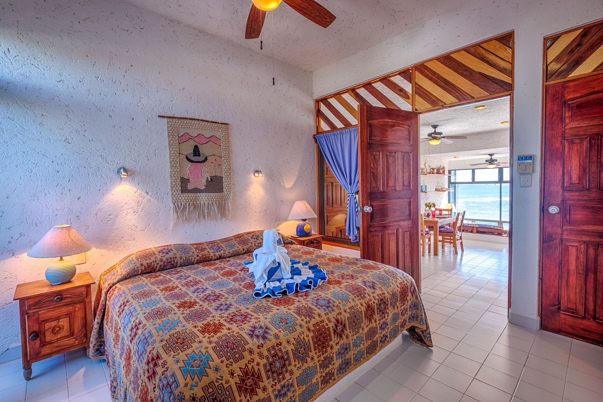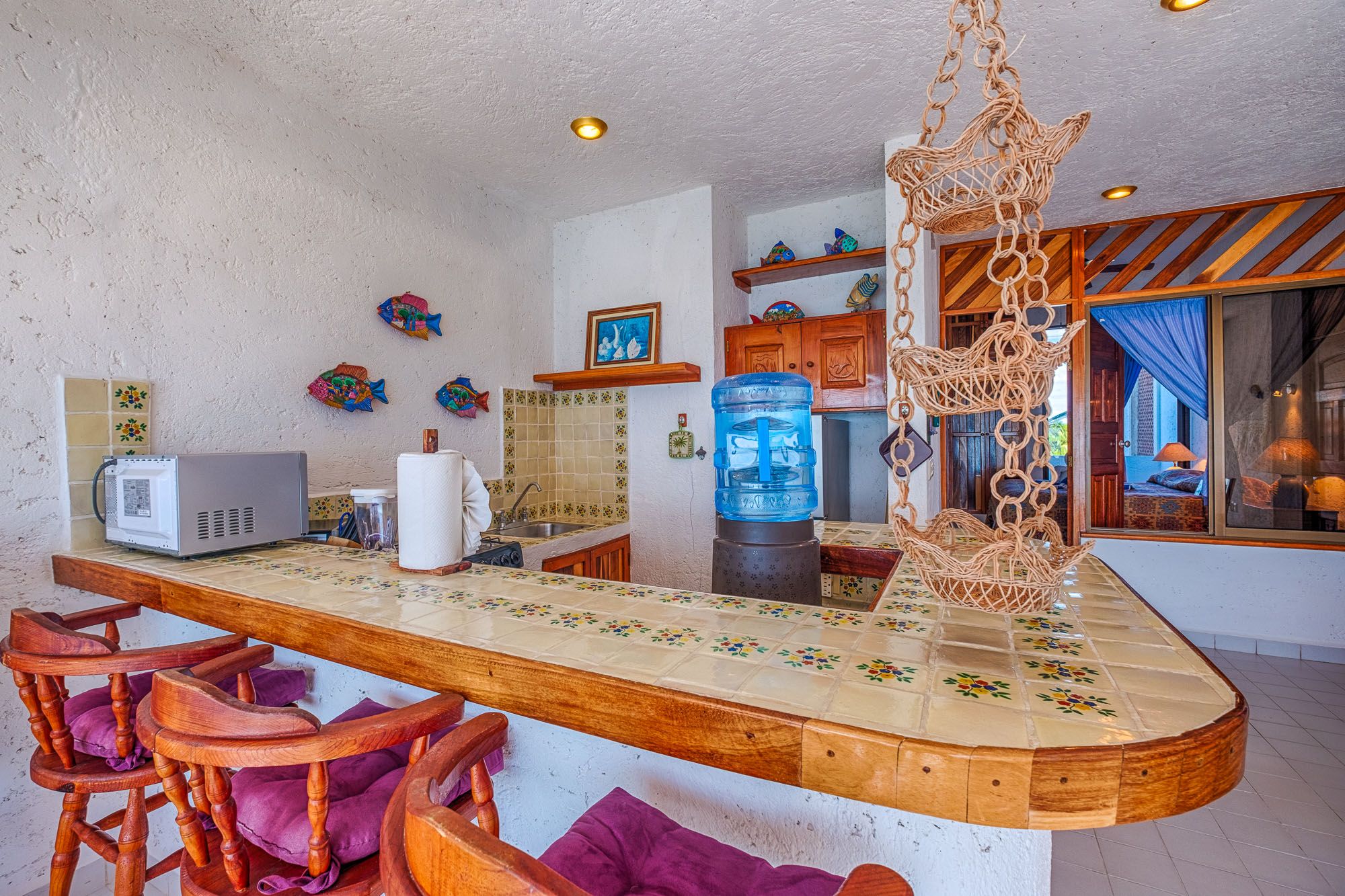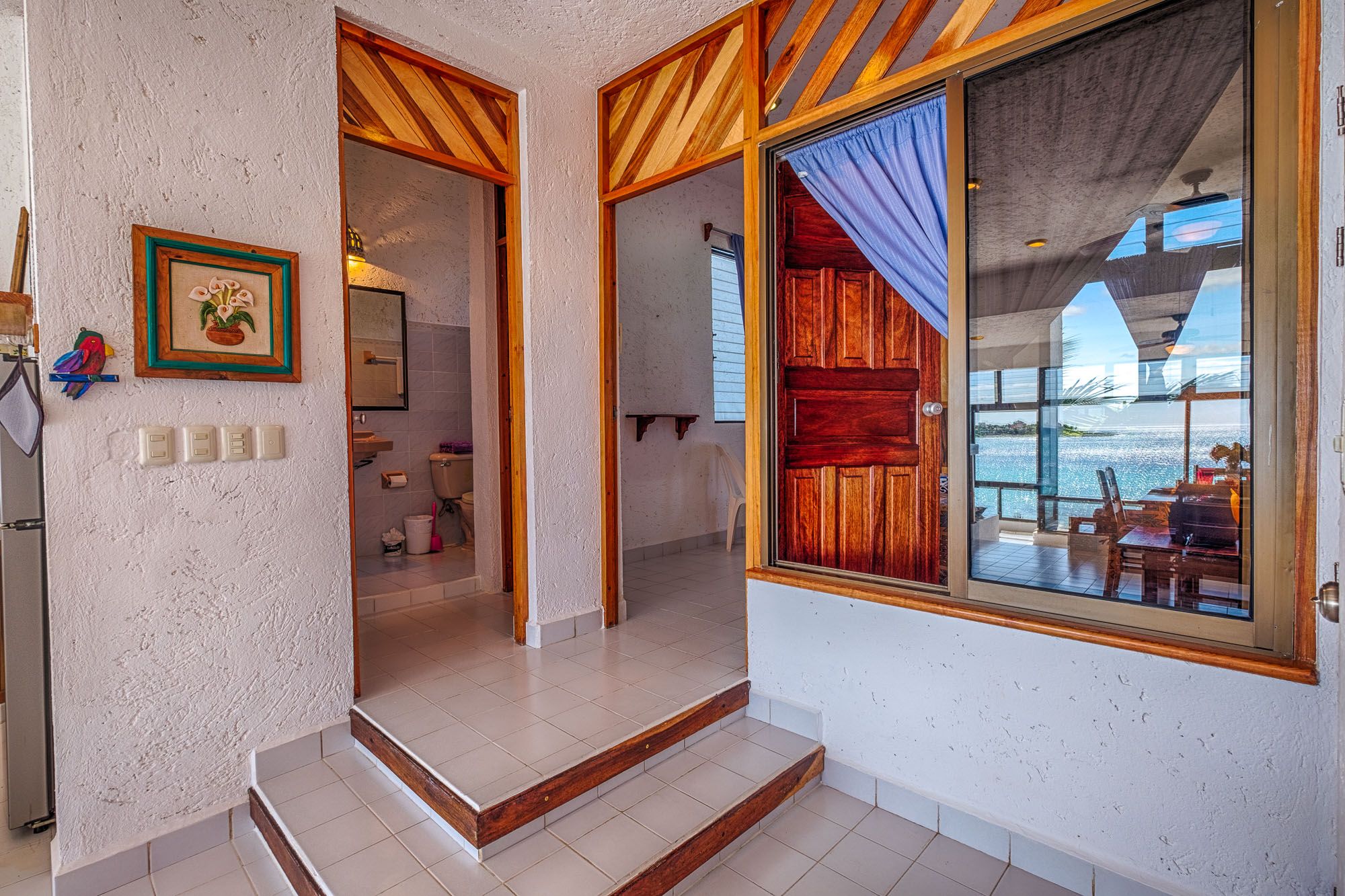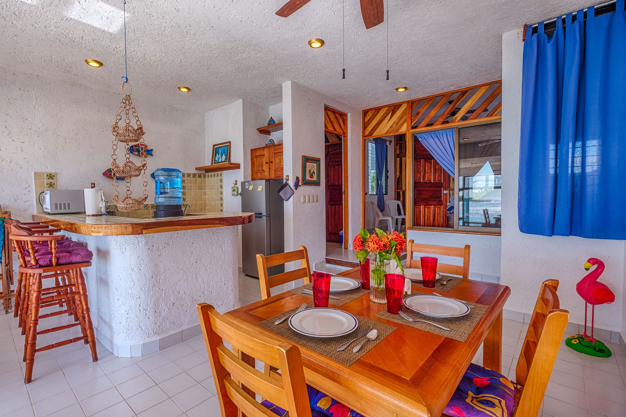 La Iguana #6 is a one bedroom with a king bed and A/C. A special peekaboo window in the bedroom also allows for ocean views so you can wake up to the sea. Truly a delight!