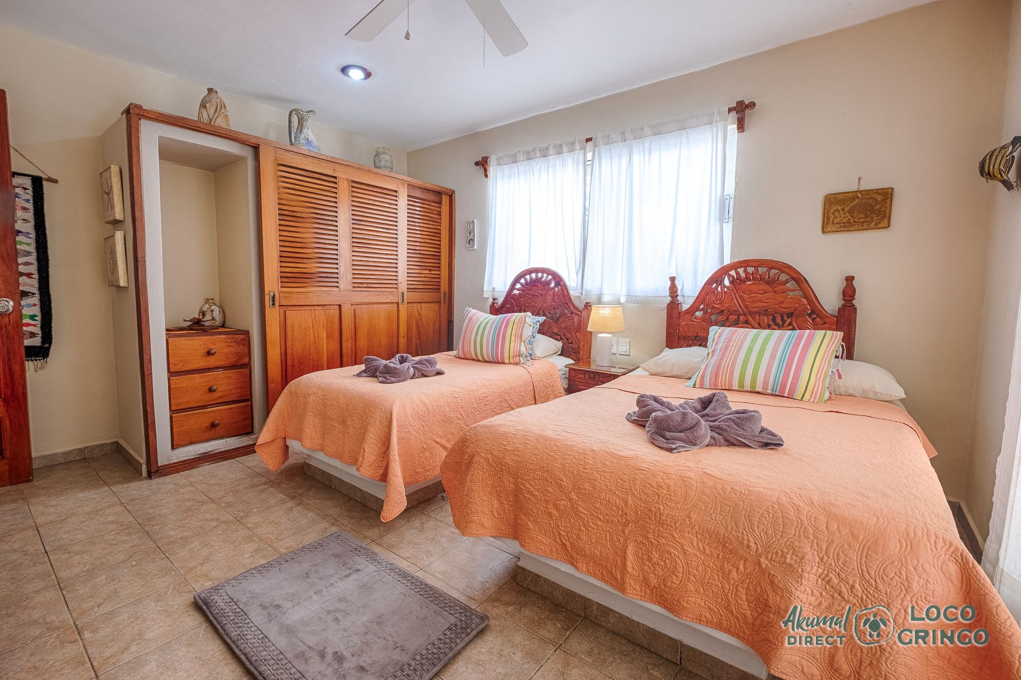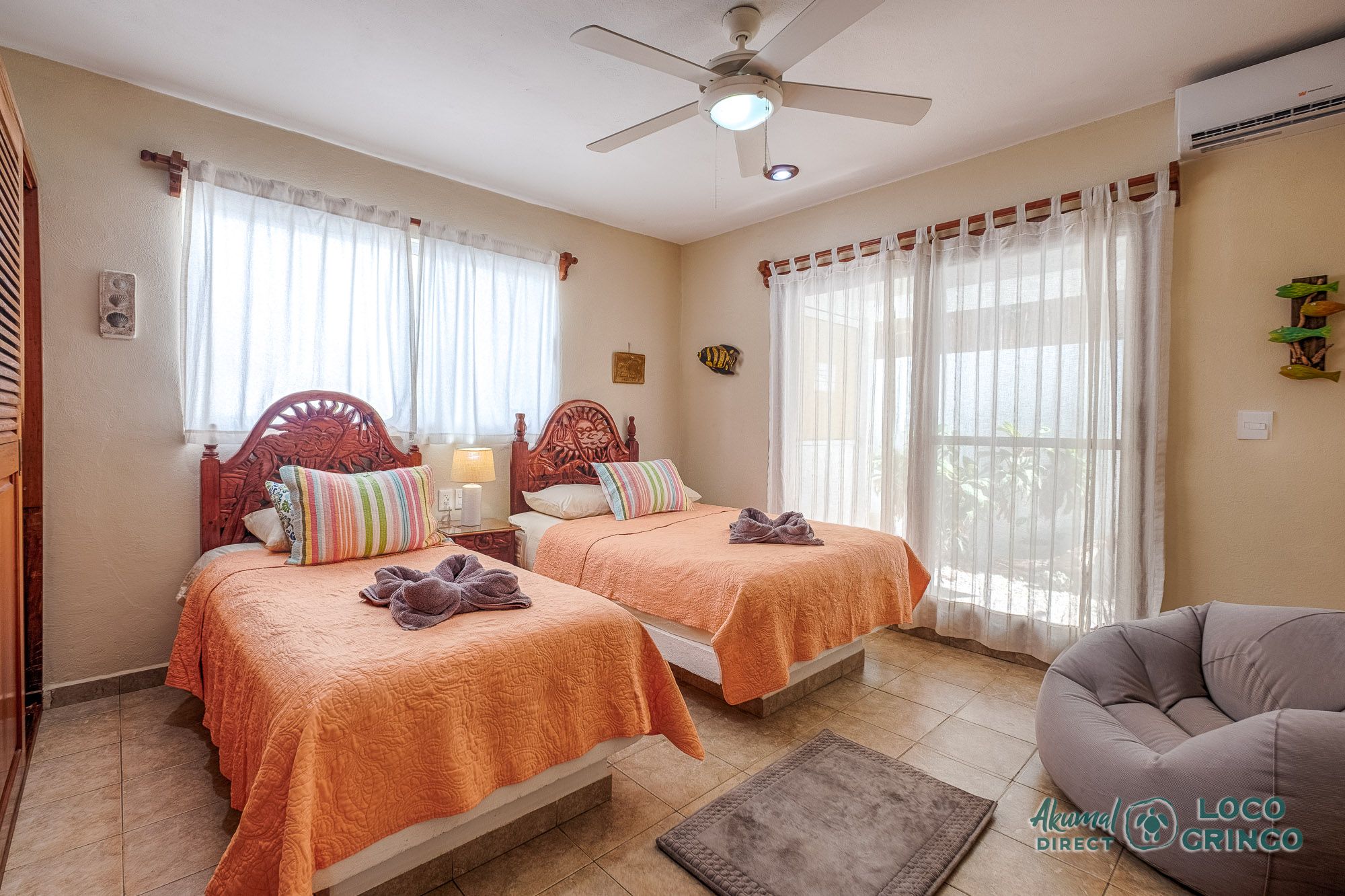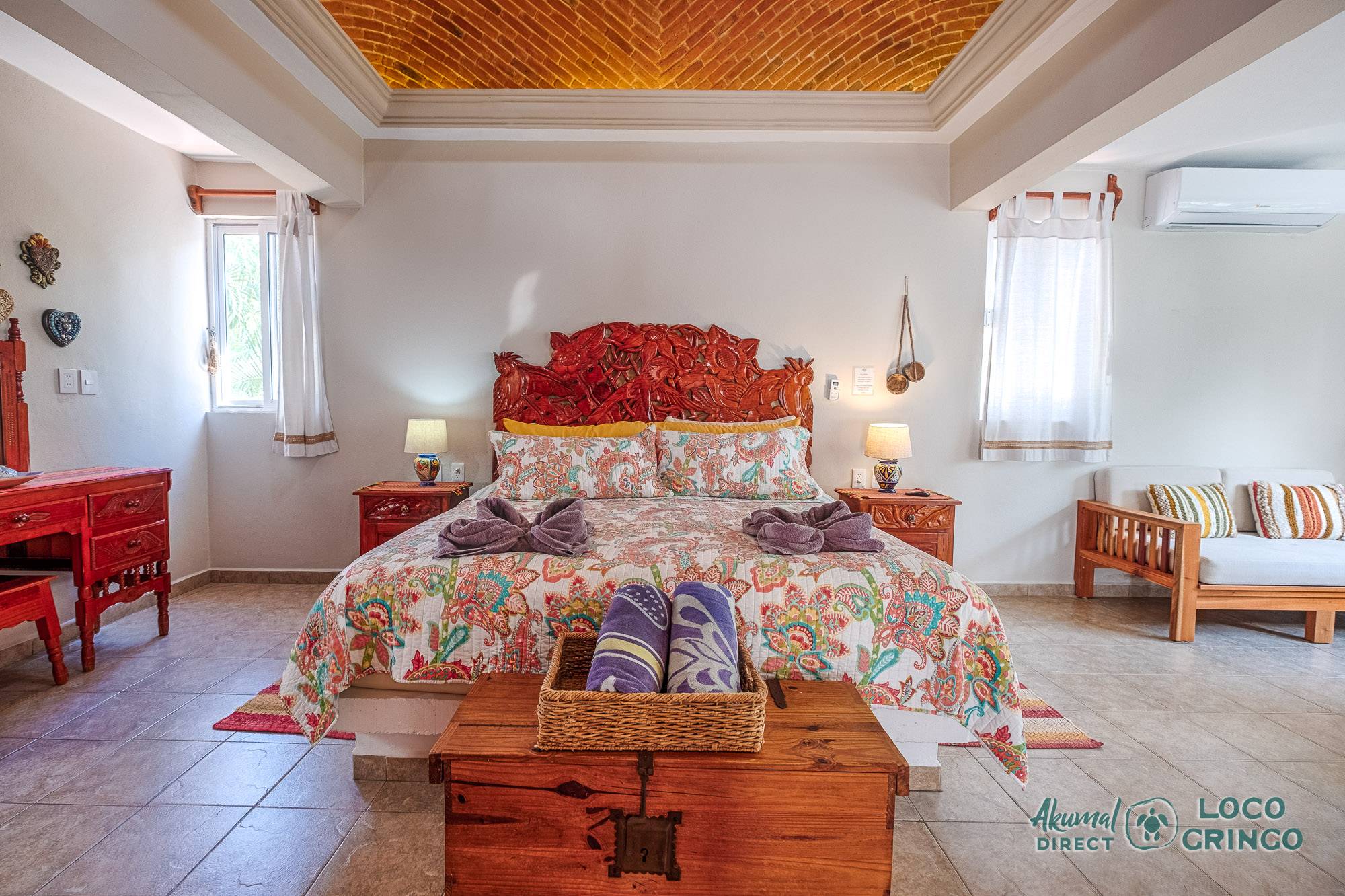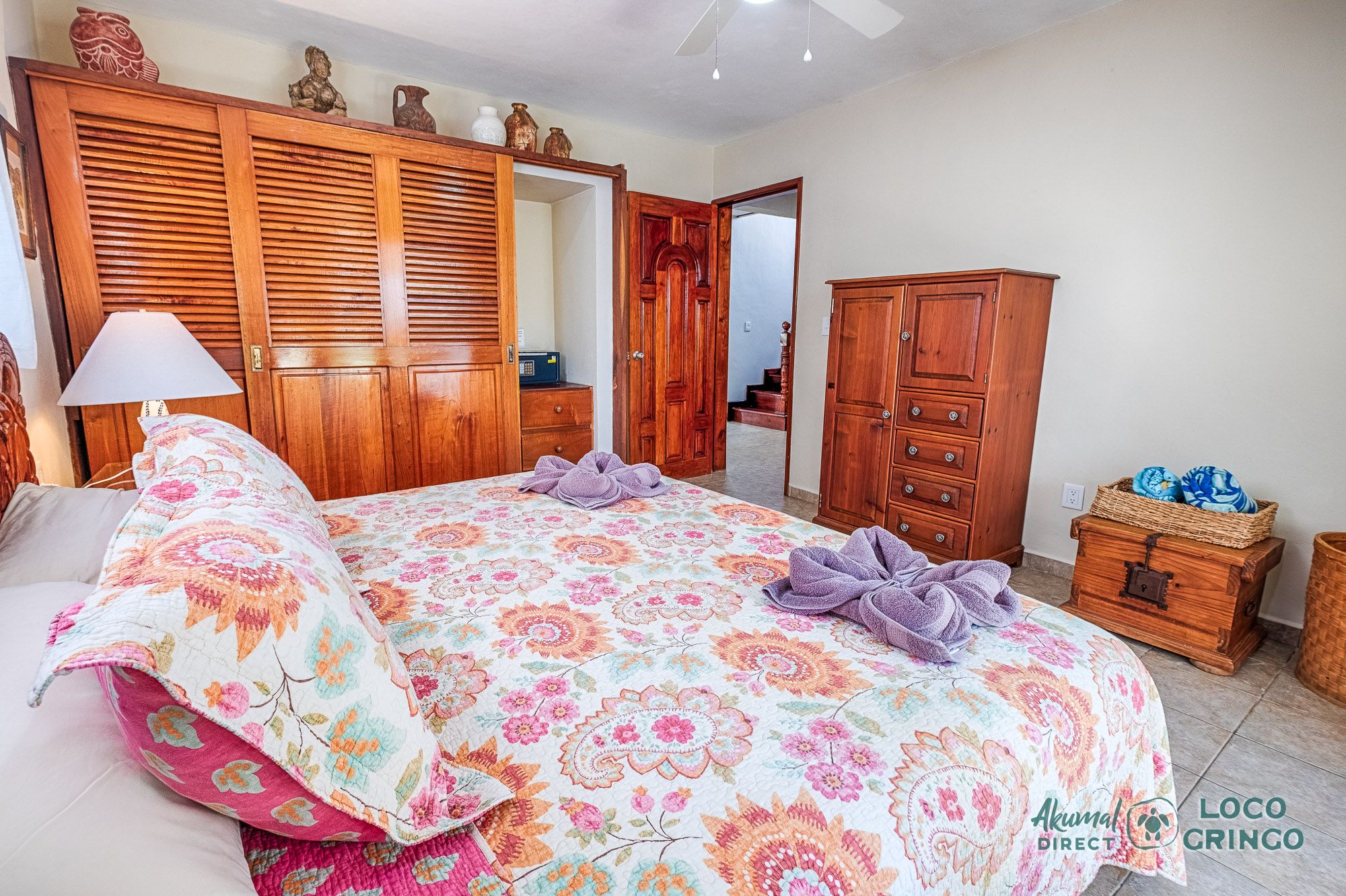 This quiet section of Half Moon Bay is close to Yal Ku Lagoon and several favorite local restaurants. The area is walkable, but public transportation is limited and the access road to the highway is unpaved. For grocery runs, cenotes, or beach-hopping days, we highly recommend renting a car or arranging a private driver. Locogringo guests can always count on our team for insider tips.