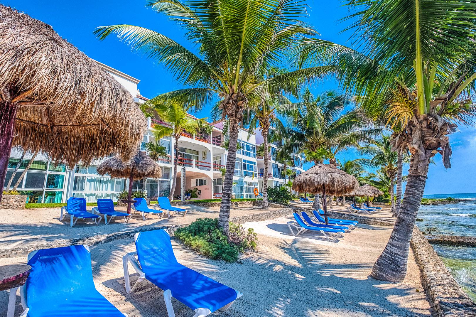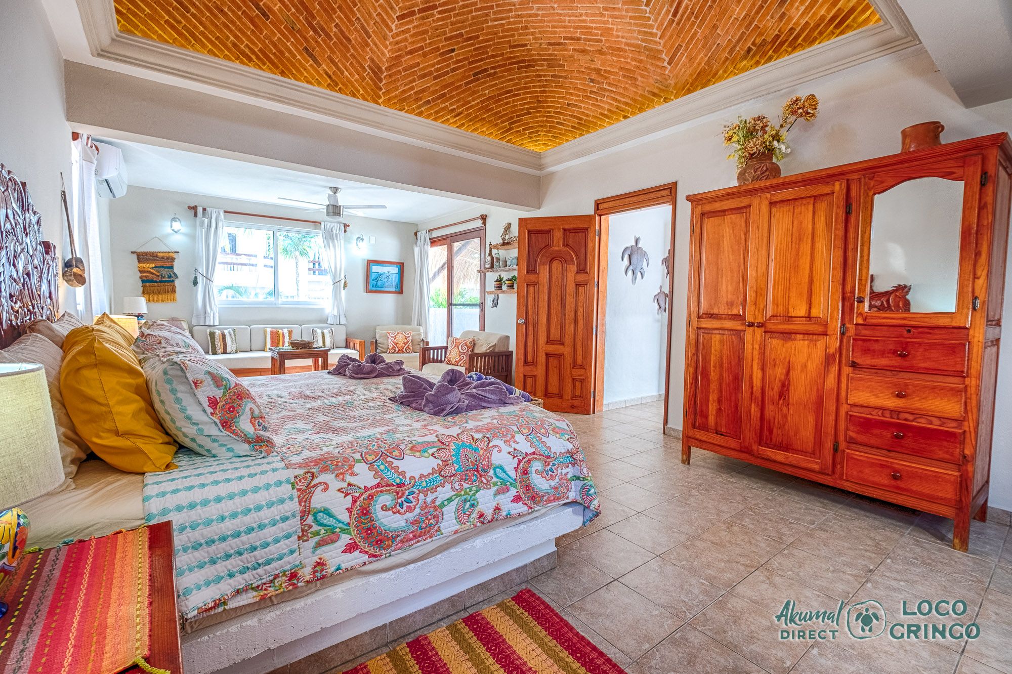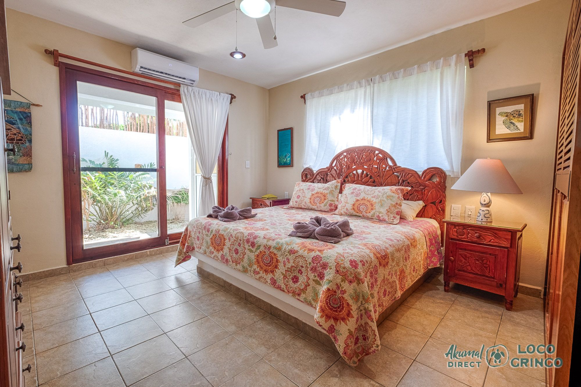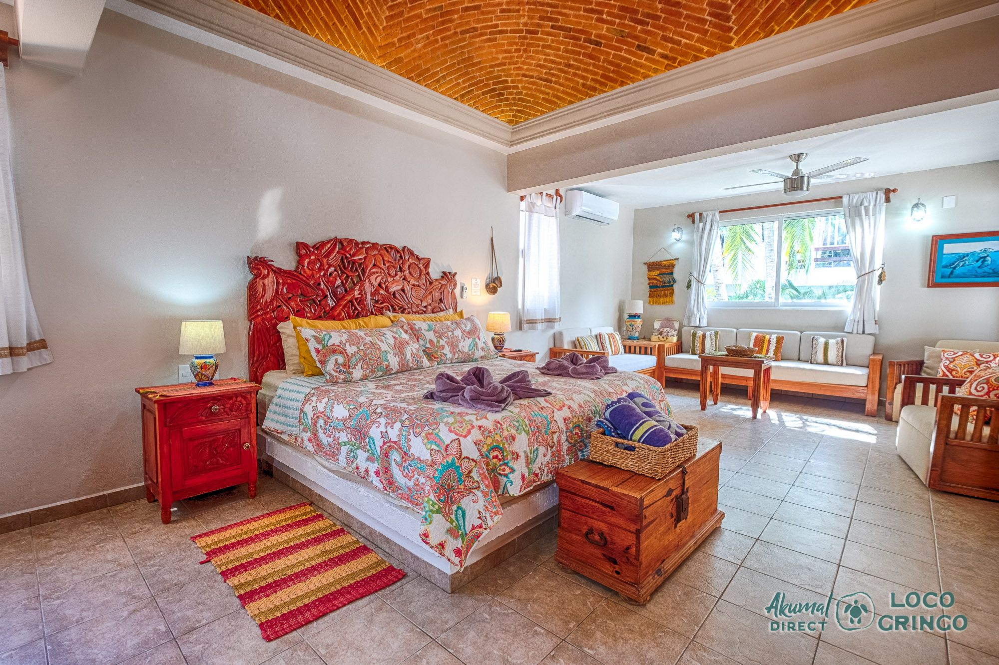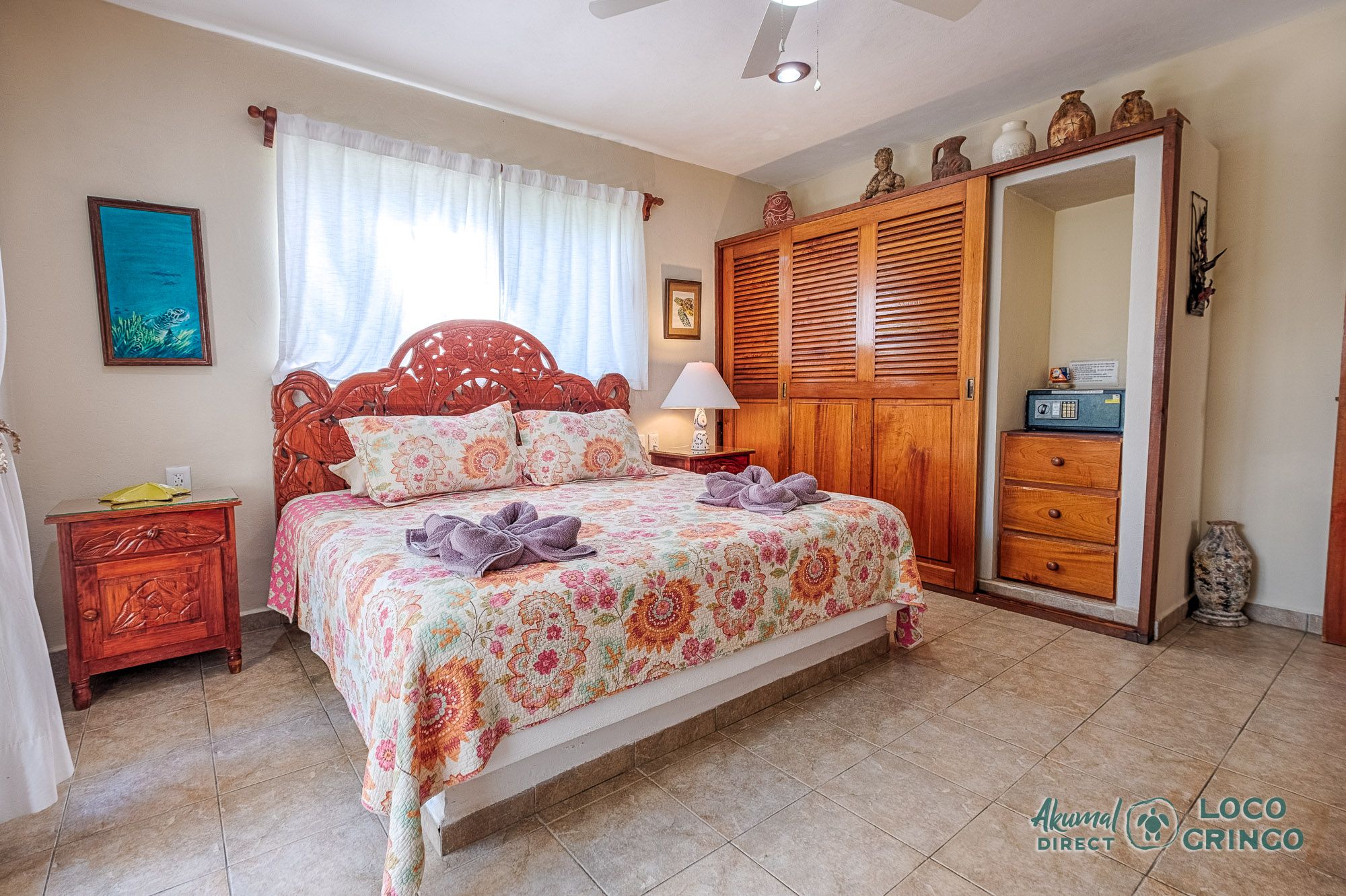 This quiet section of Half Moon Bay is close to Yal Ku Lagoon and several favorite local restaurants. The area is walkable, but public transportation is limited and the access road to the highway is unpaved. For grocery runs, cenotes, or beach-hopping days, we highly recommend renting a car or arranging a private driver. Locogringo guests can always count on our team for insider tips.