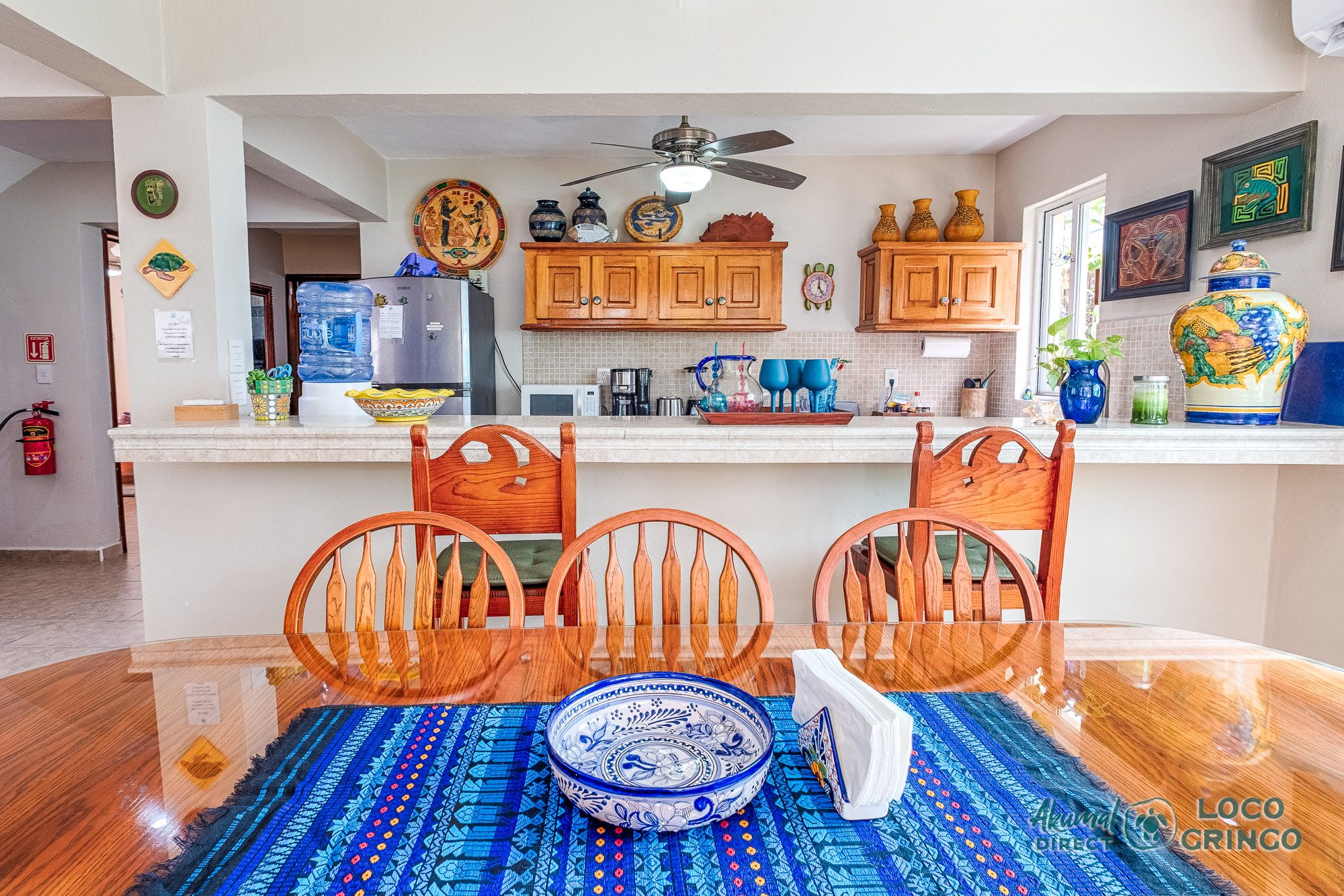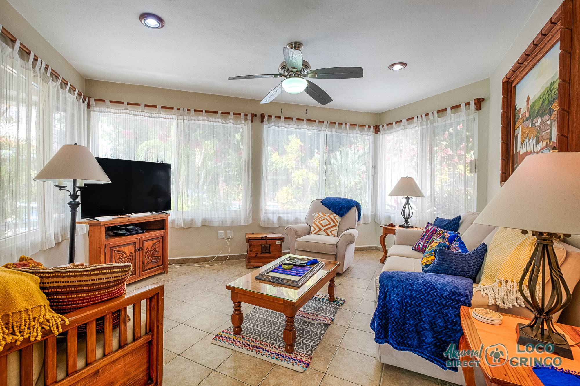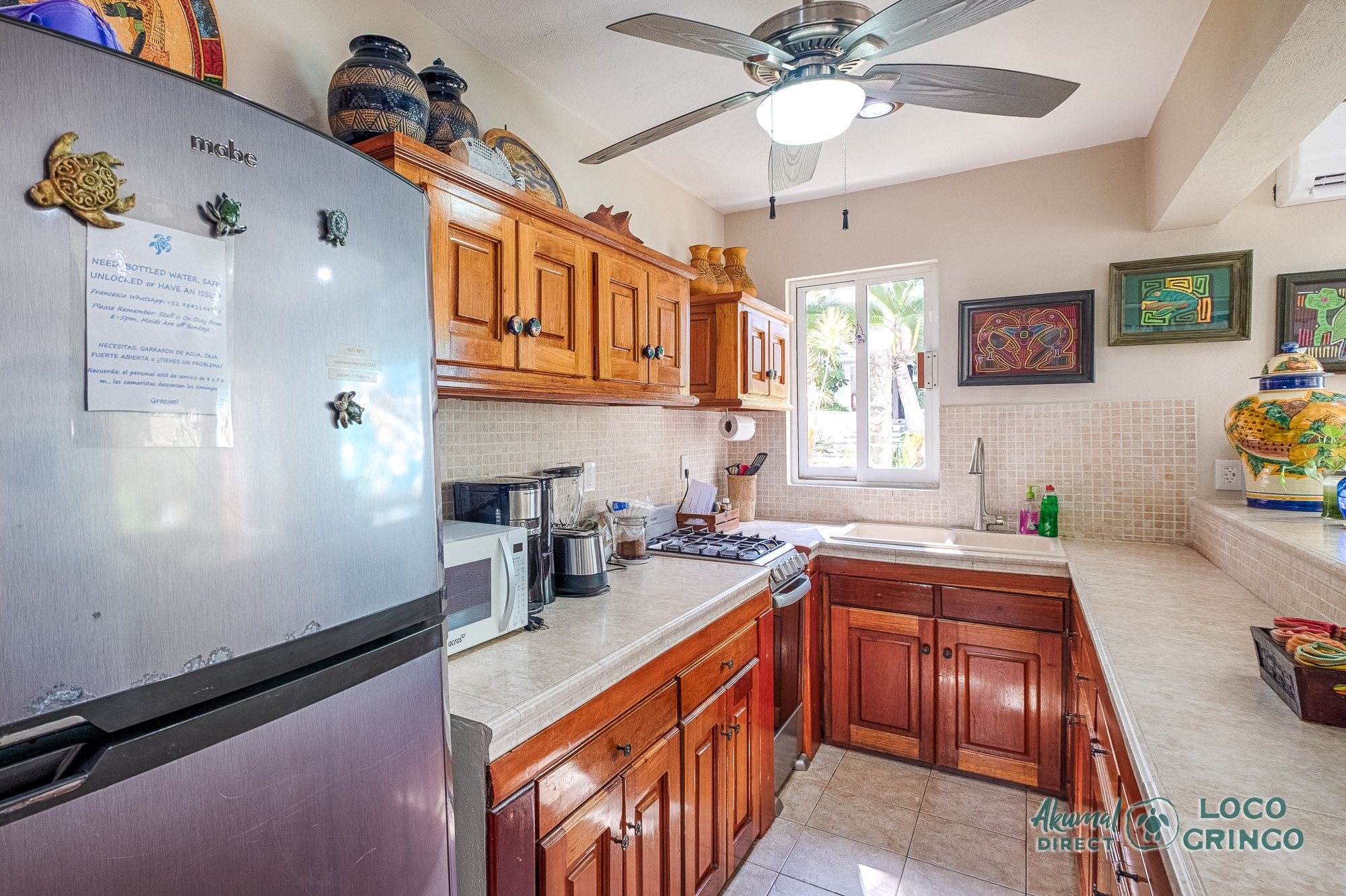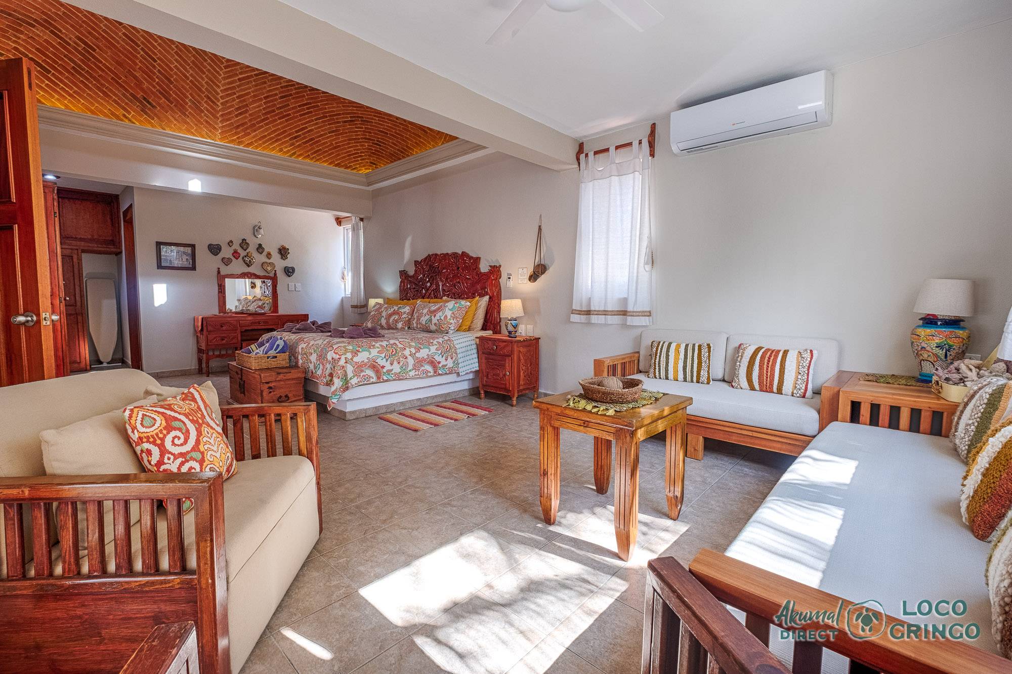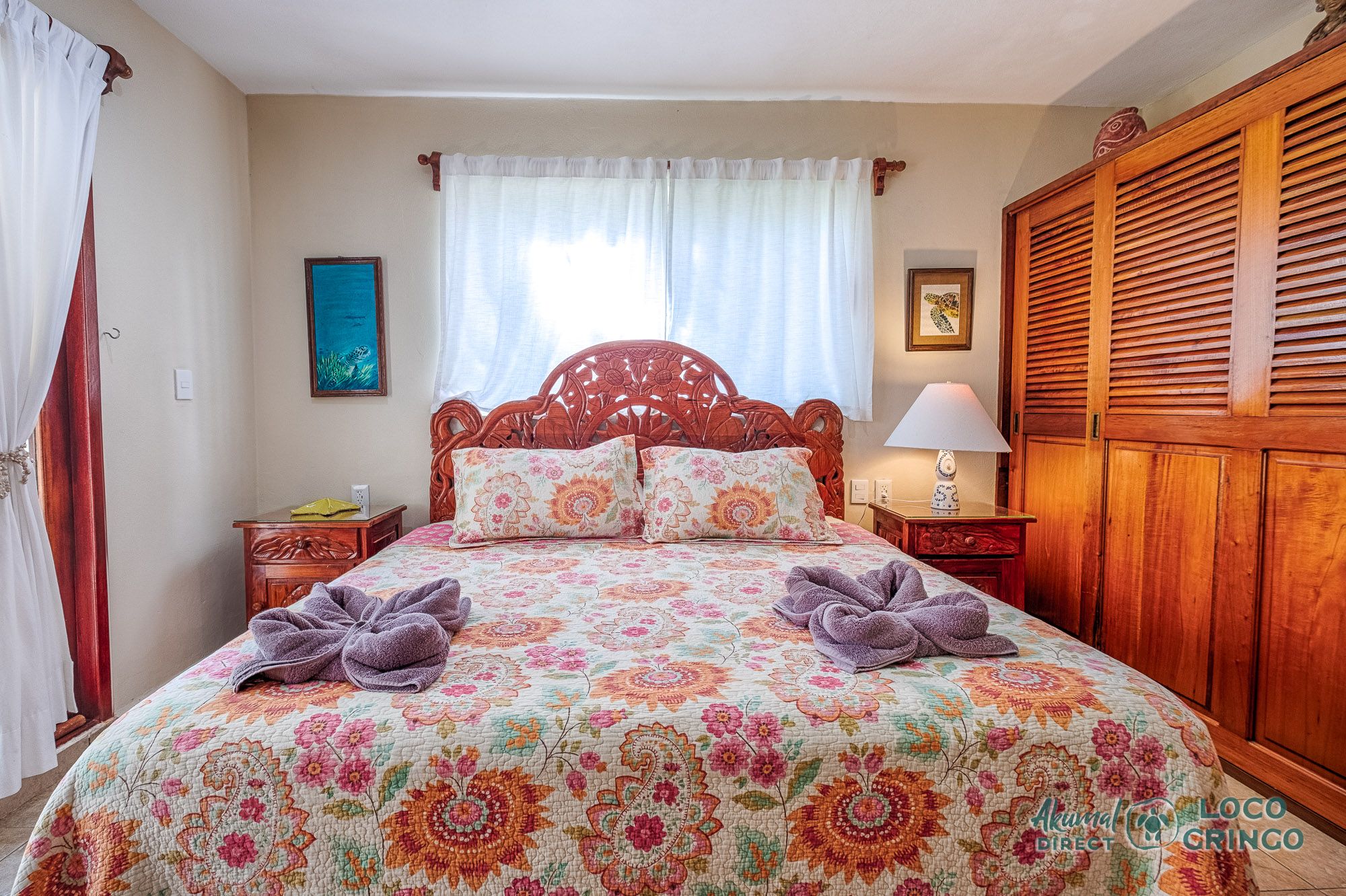 This quiet section of Half Moon Bay is close to Yal Ku Lagoon and several favorite local restaurants. The area is walkable, but public transportation is limited and the access road to the highway is unpaved. For grocery runs, cenotes, or beach-hopping days, we highly recommend renting a car or arranging a private driver. Locogringo guests can always count on our team for insider tips.