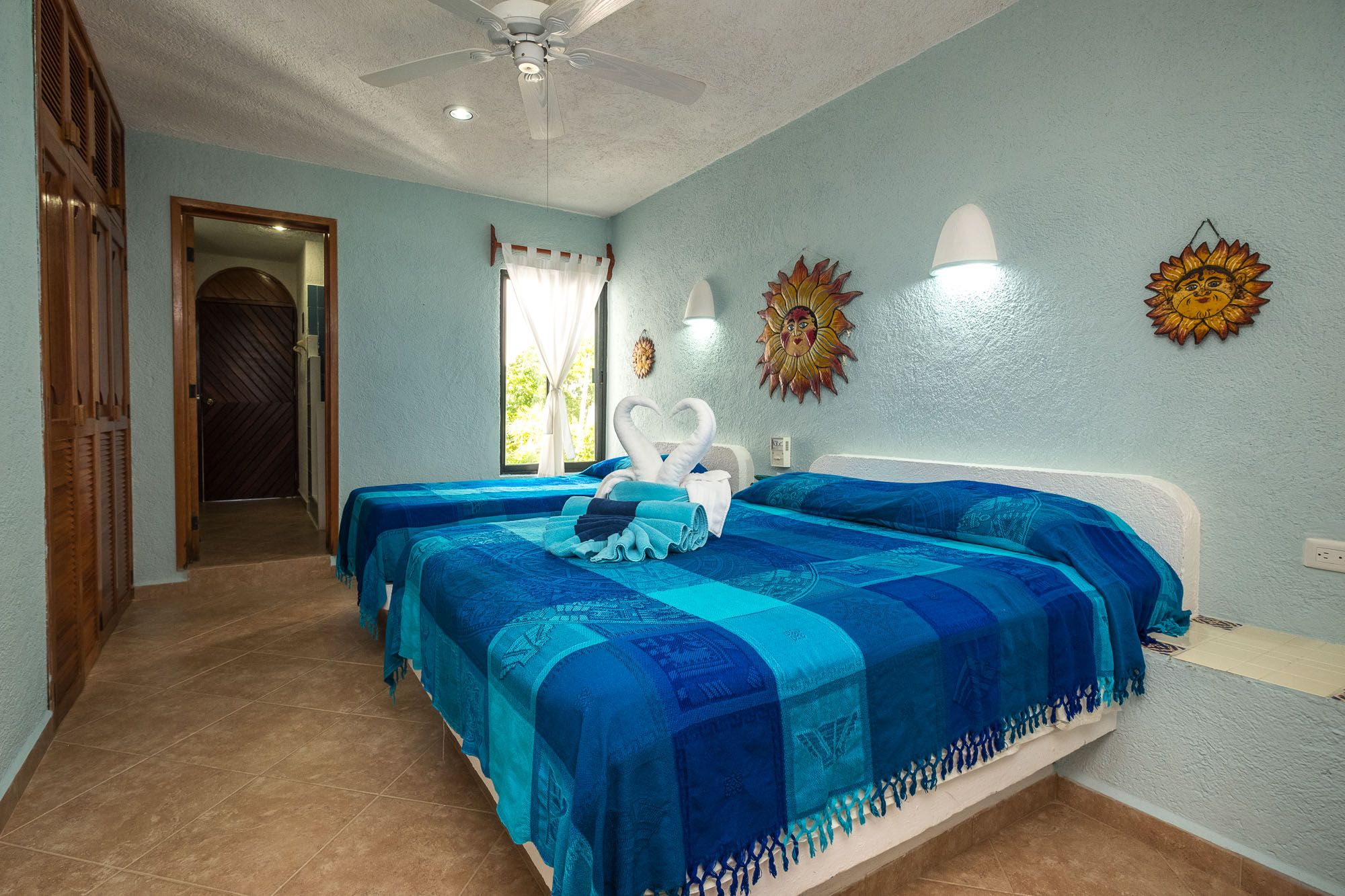 Beautiful art Luna Azul condo 4 Half Moon Bay beach Akumal Mexico 2 bedroom vacation rental second level