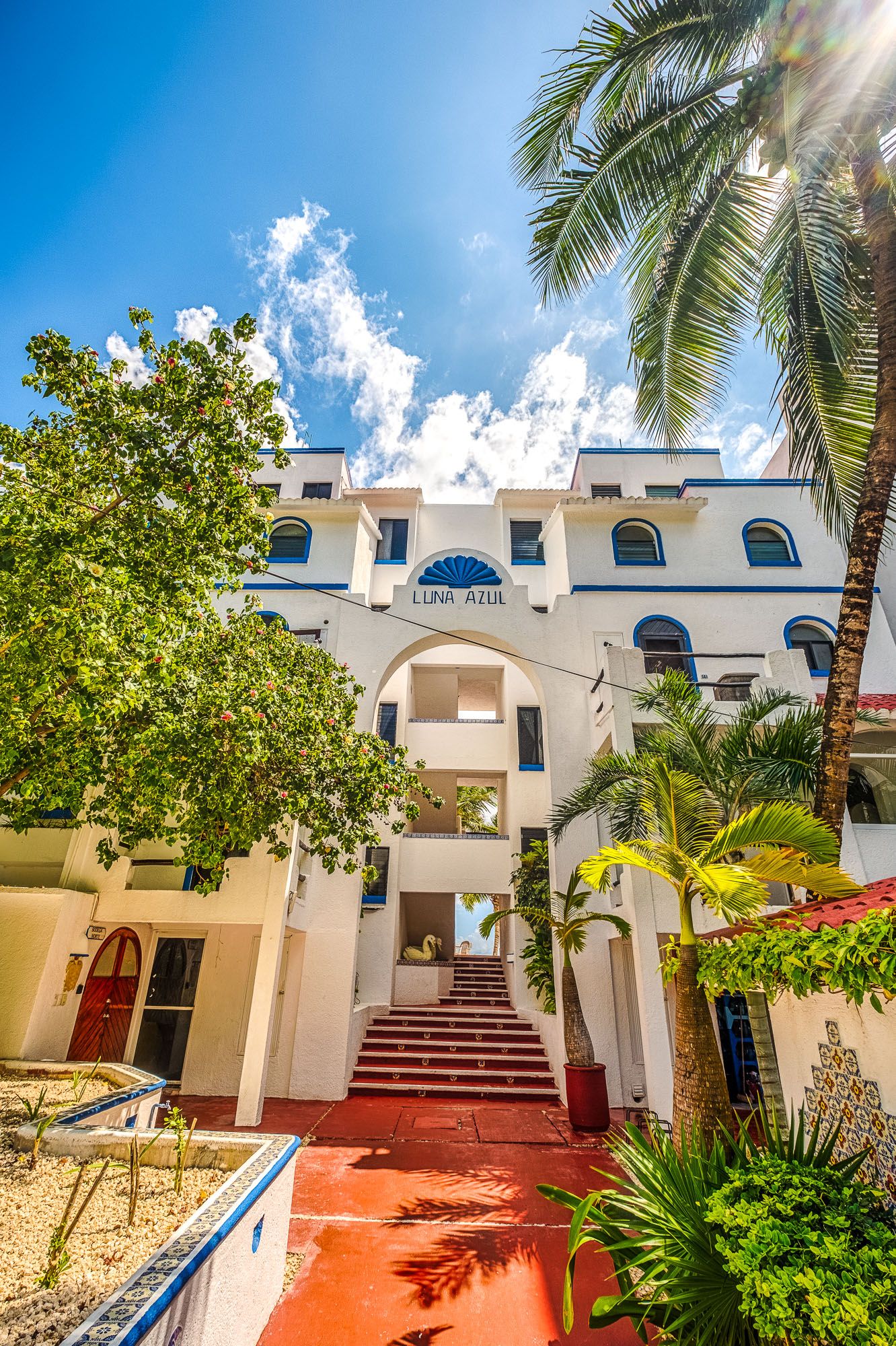 Front of the Condo complex Luna Azul condo 4 Half Moon Bay beach Akumal Mexico 2 bedroom vacation rental second level