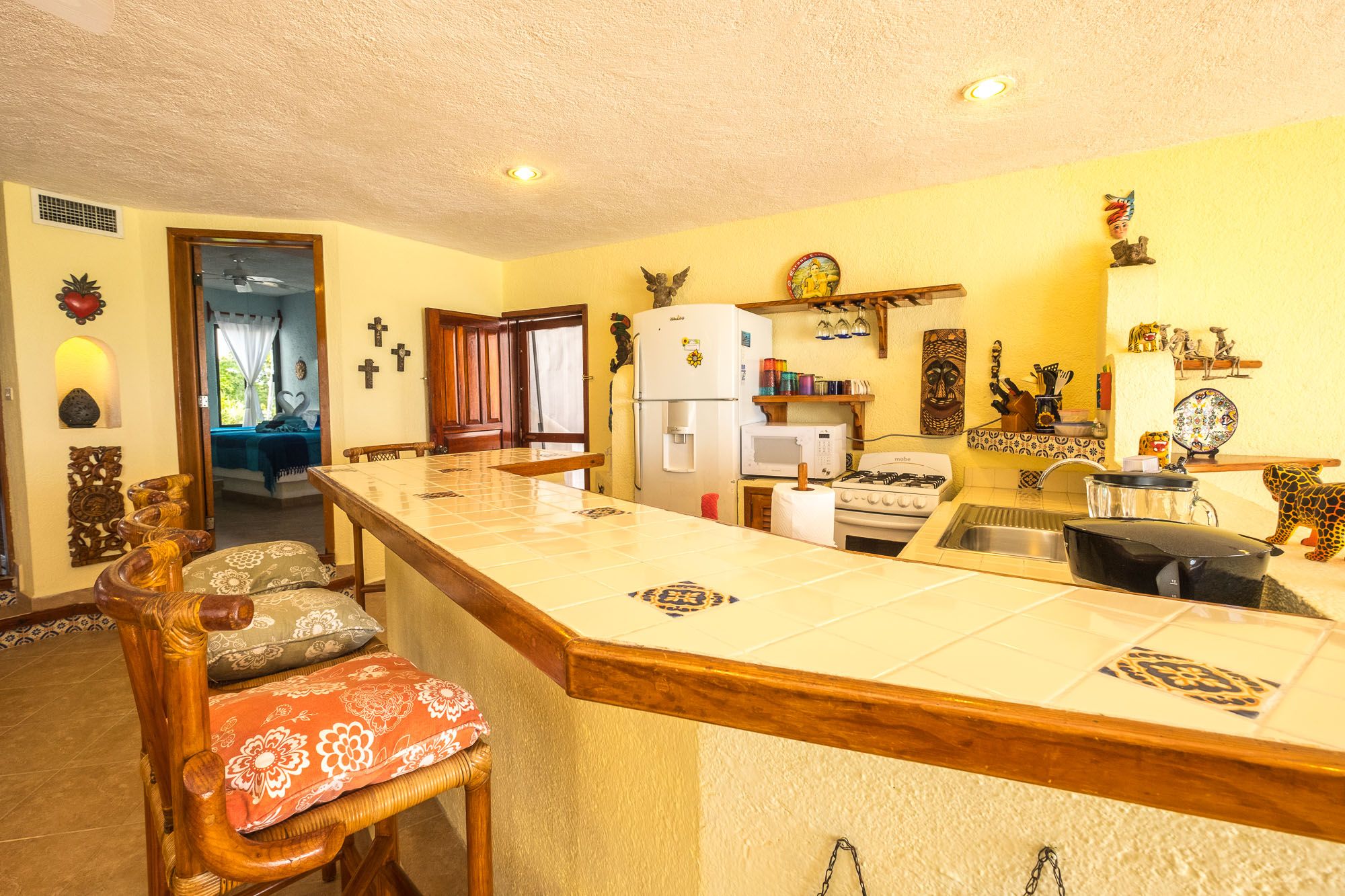 Kitchen Luna Azul condo 4 Half Moon Bay beach Akumal Mexico 2 bedroom vacation rental second level