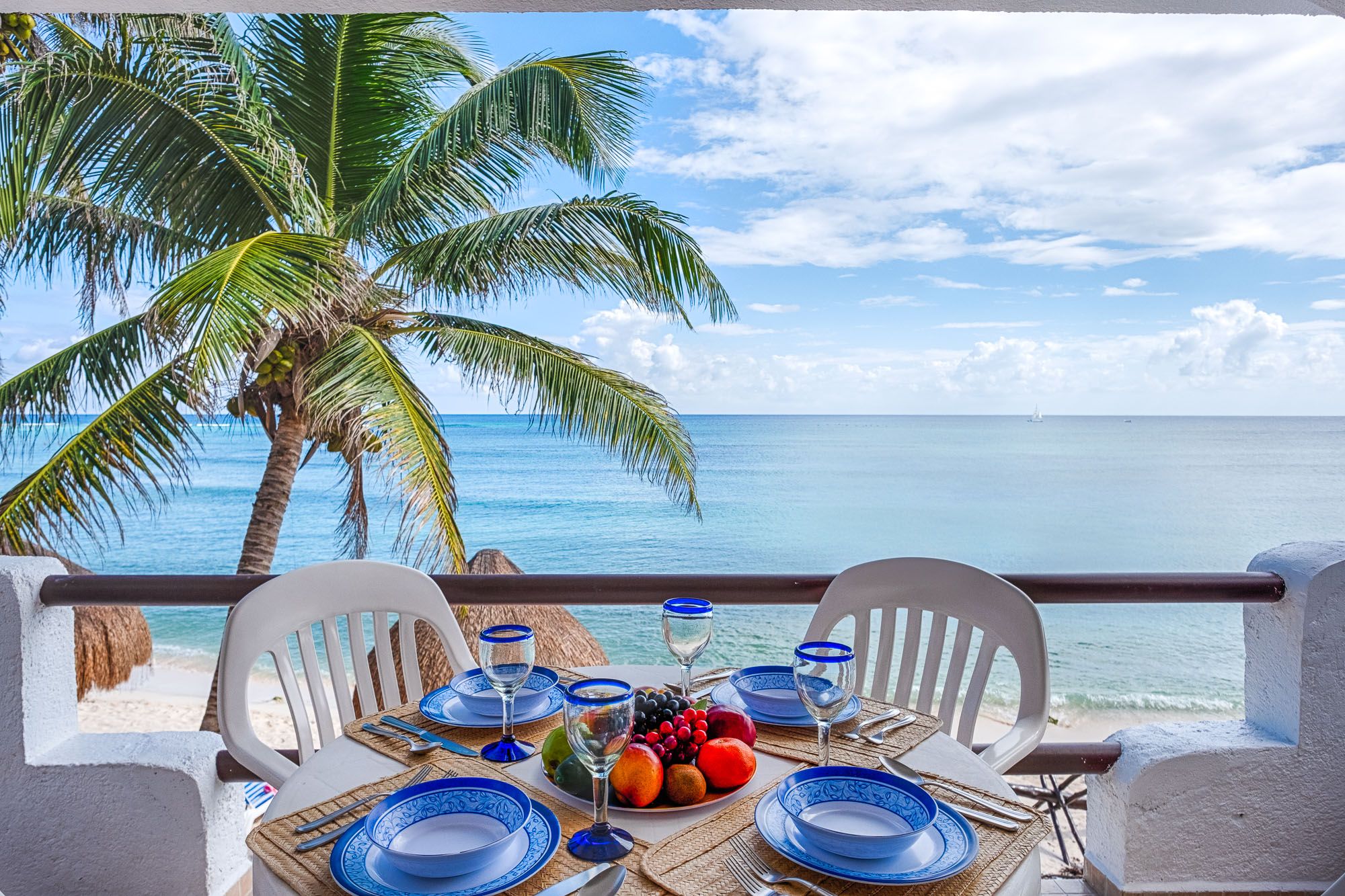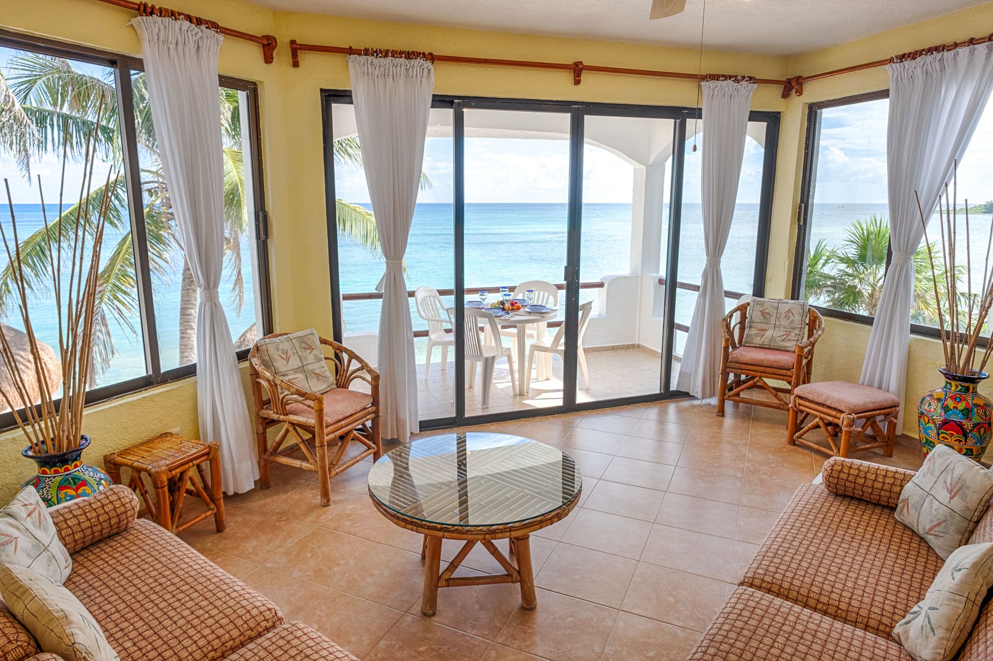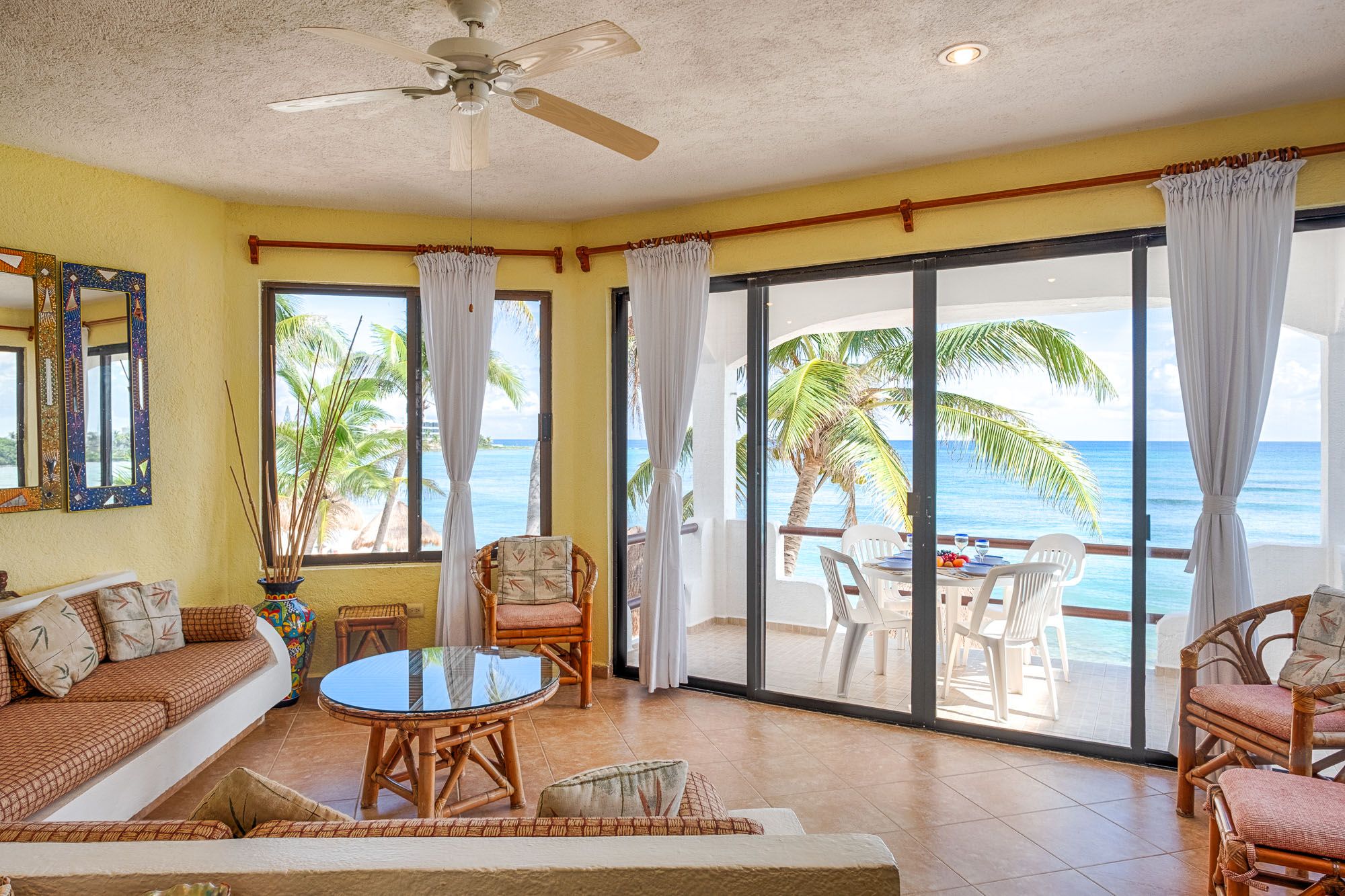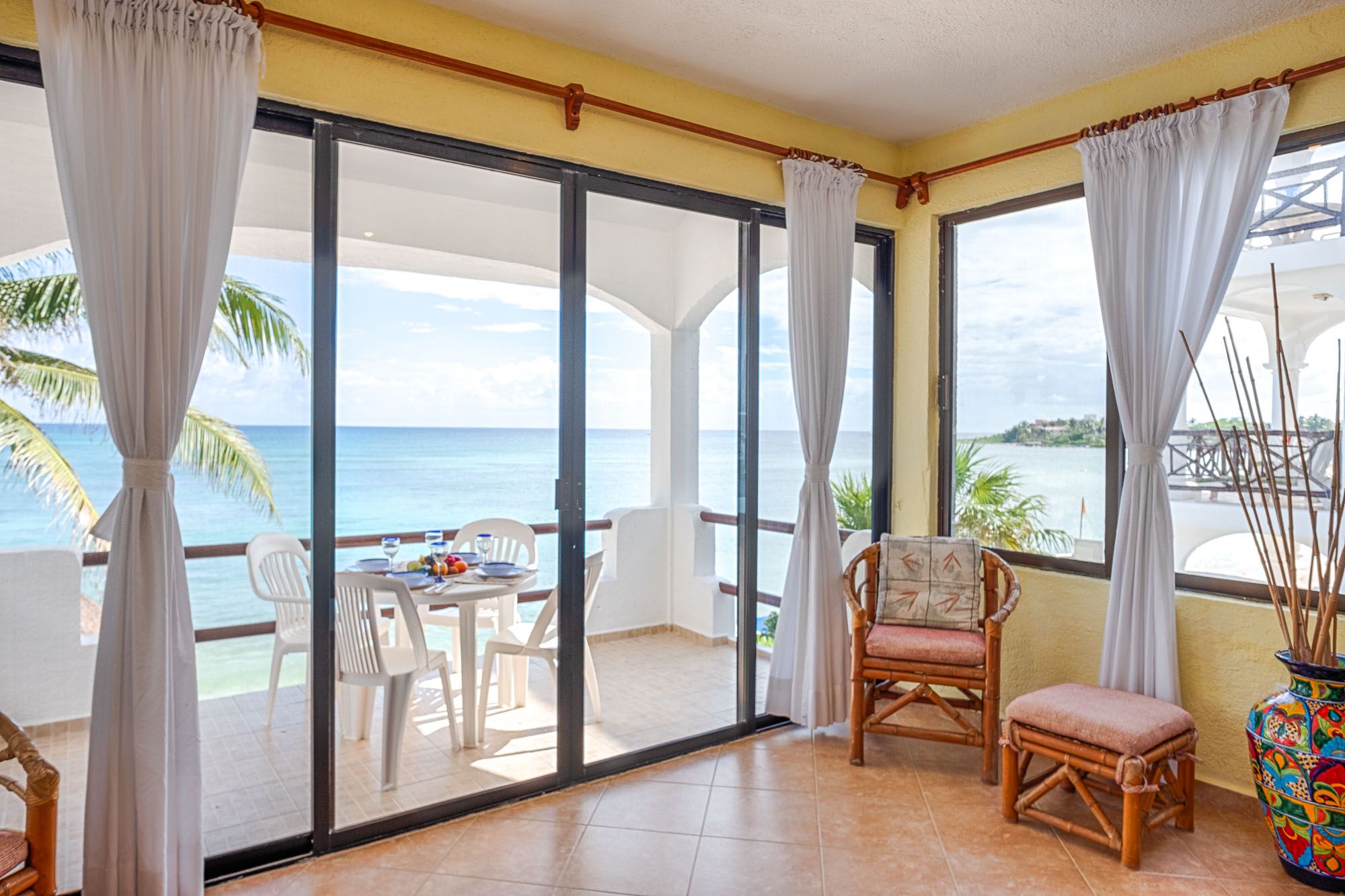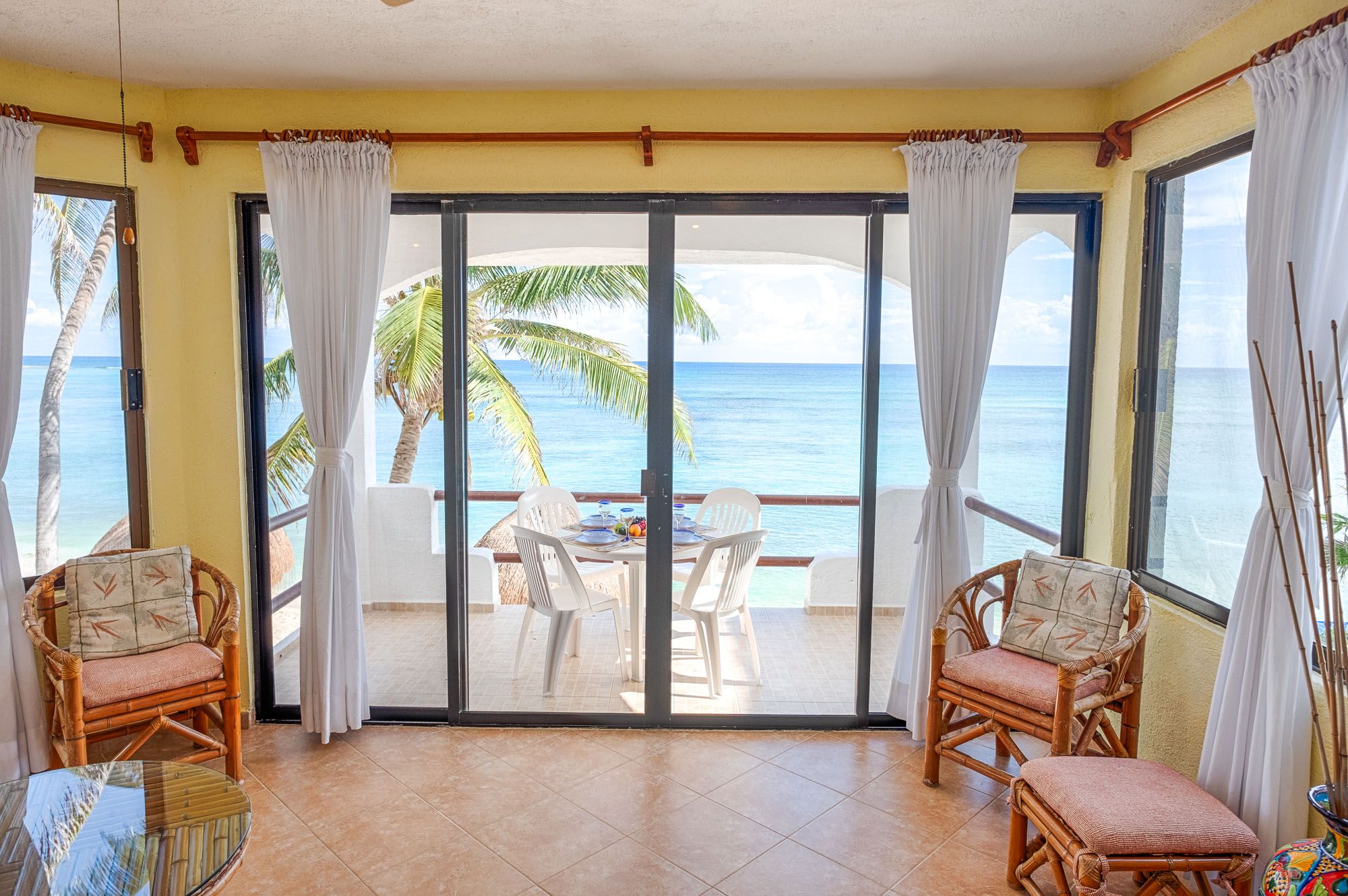 Condo Views from the living room Luna Azul condo 4 Half Moon Bay beach Akumal Mexico 2 bedroom vacation rental second level