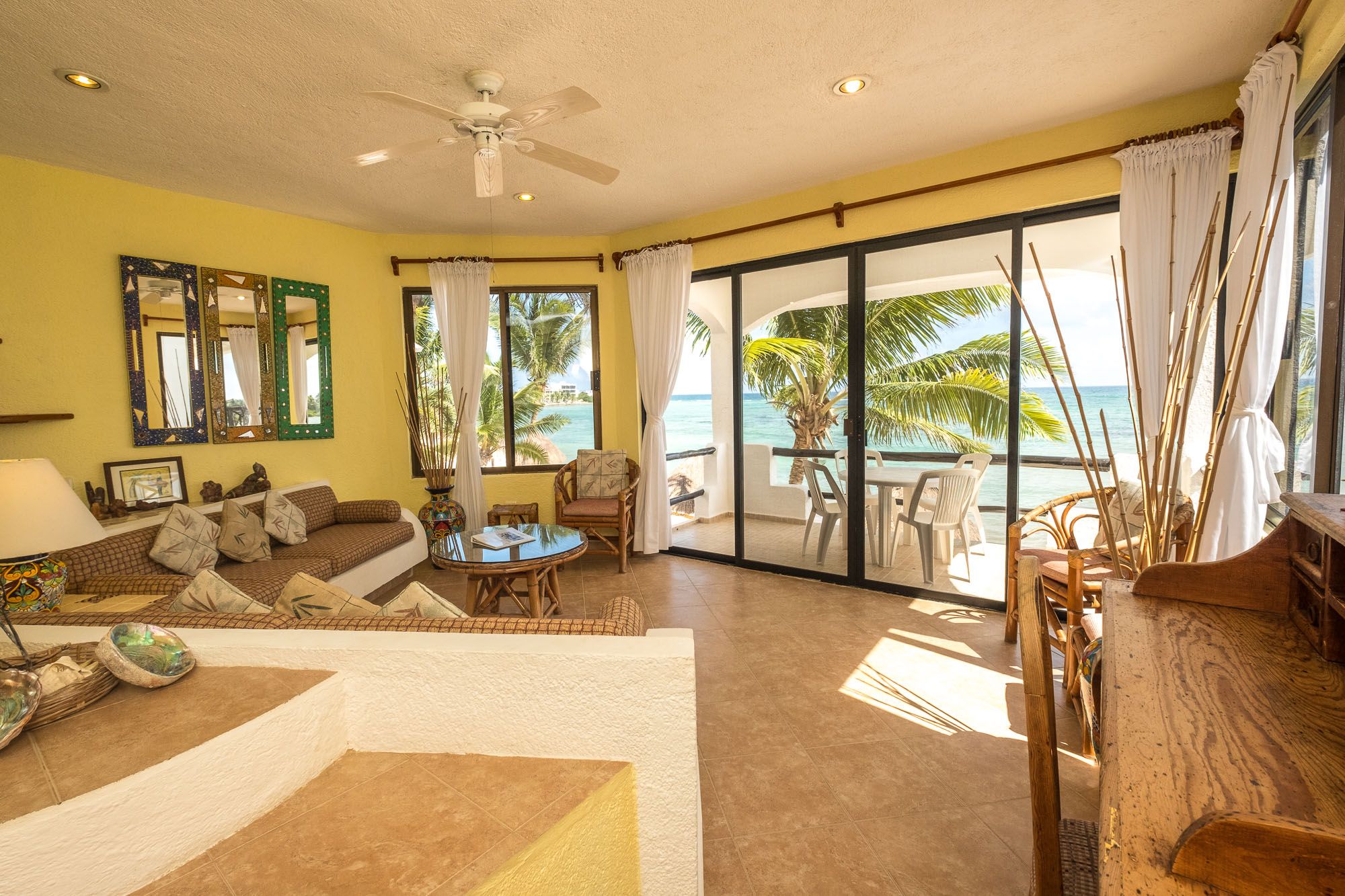 Living Room Luna Azul condo 4 Half Moon Bay beach Akumal Mexico 2 bedroom vacation rental second level