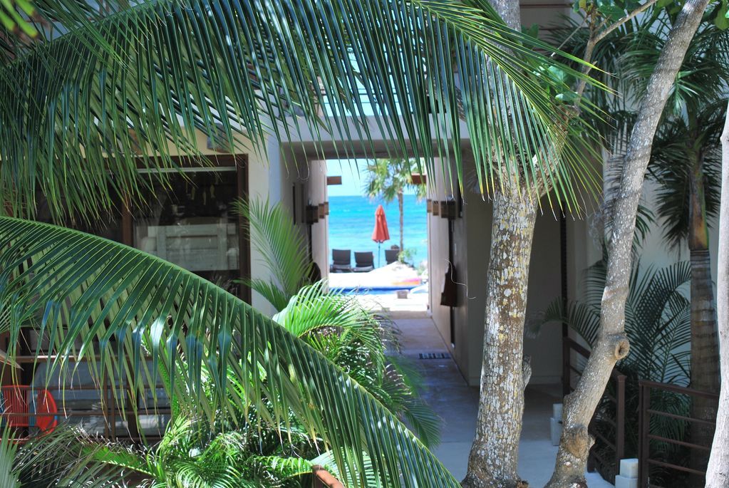 View from the balcony of the tropical garden and sea Nahil Studio 12 Akumal Mexico vacation rental