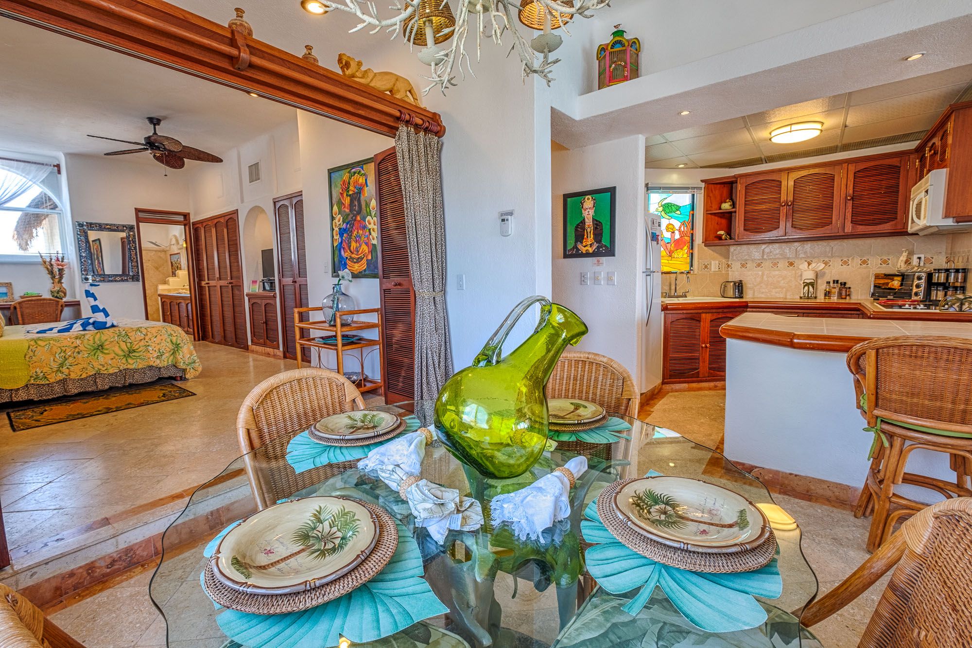 Beautiful decor,well stocked kitchen, comfortable beds, amazing views and friendly staff. Perfect spot easy walking distance to restaurants and Ya kul lagoon