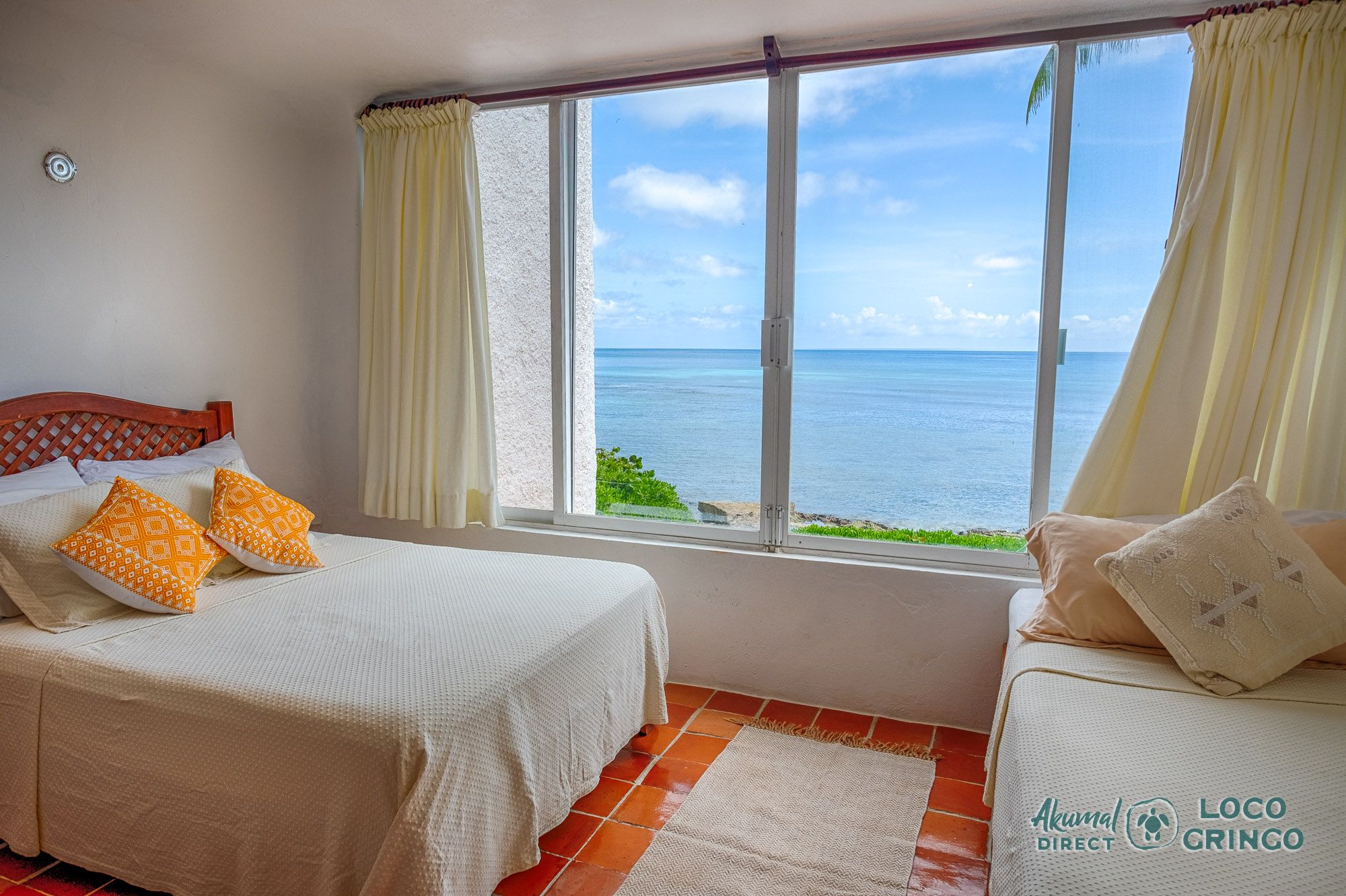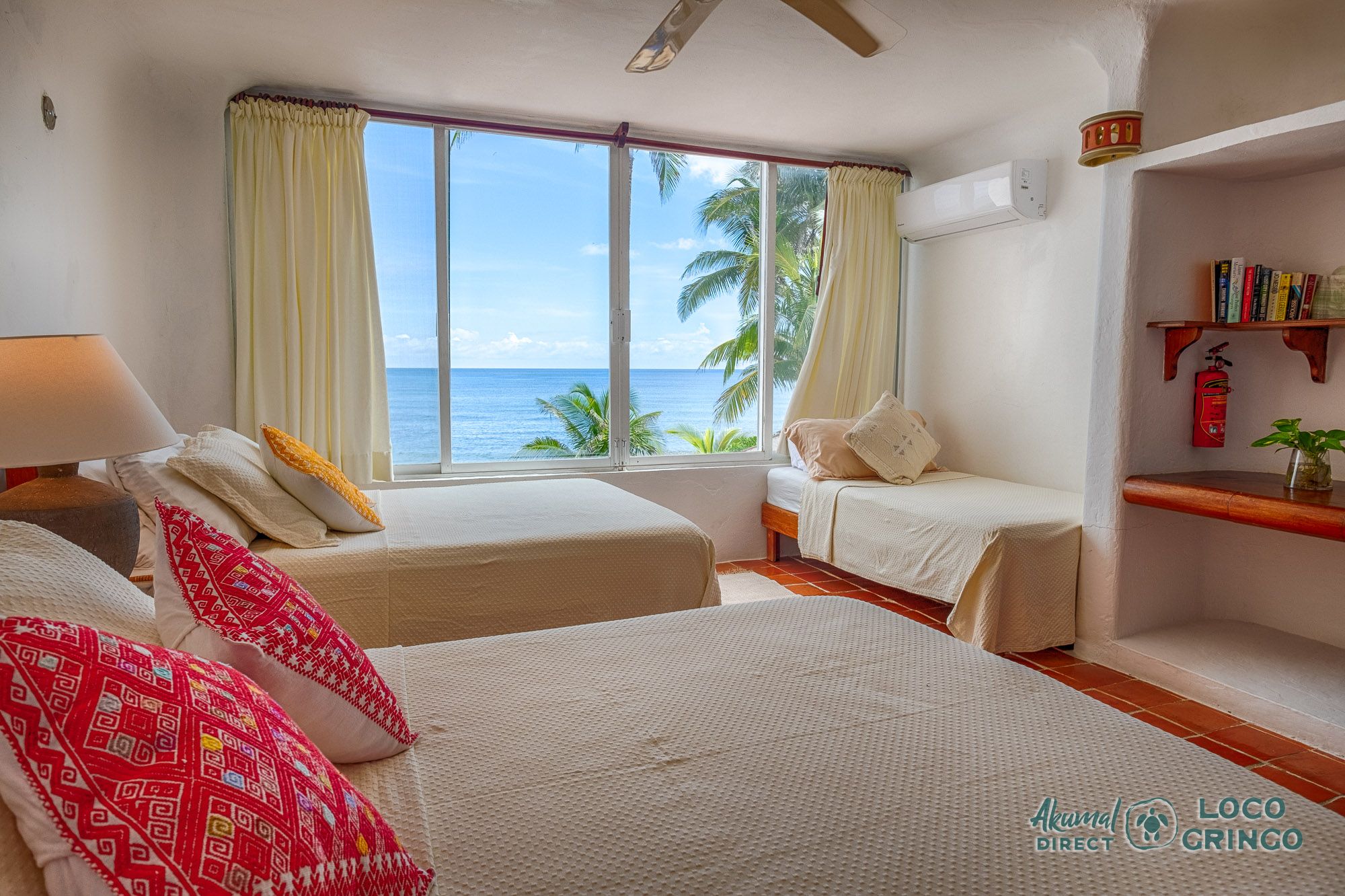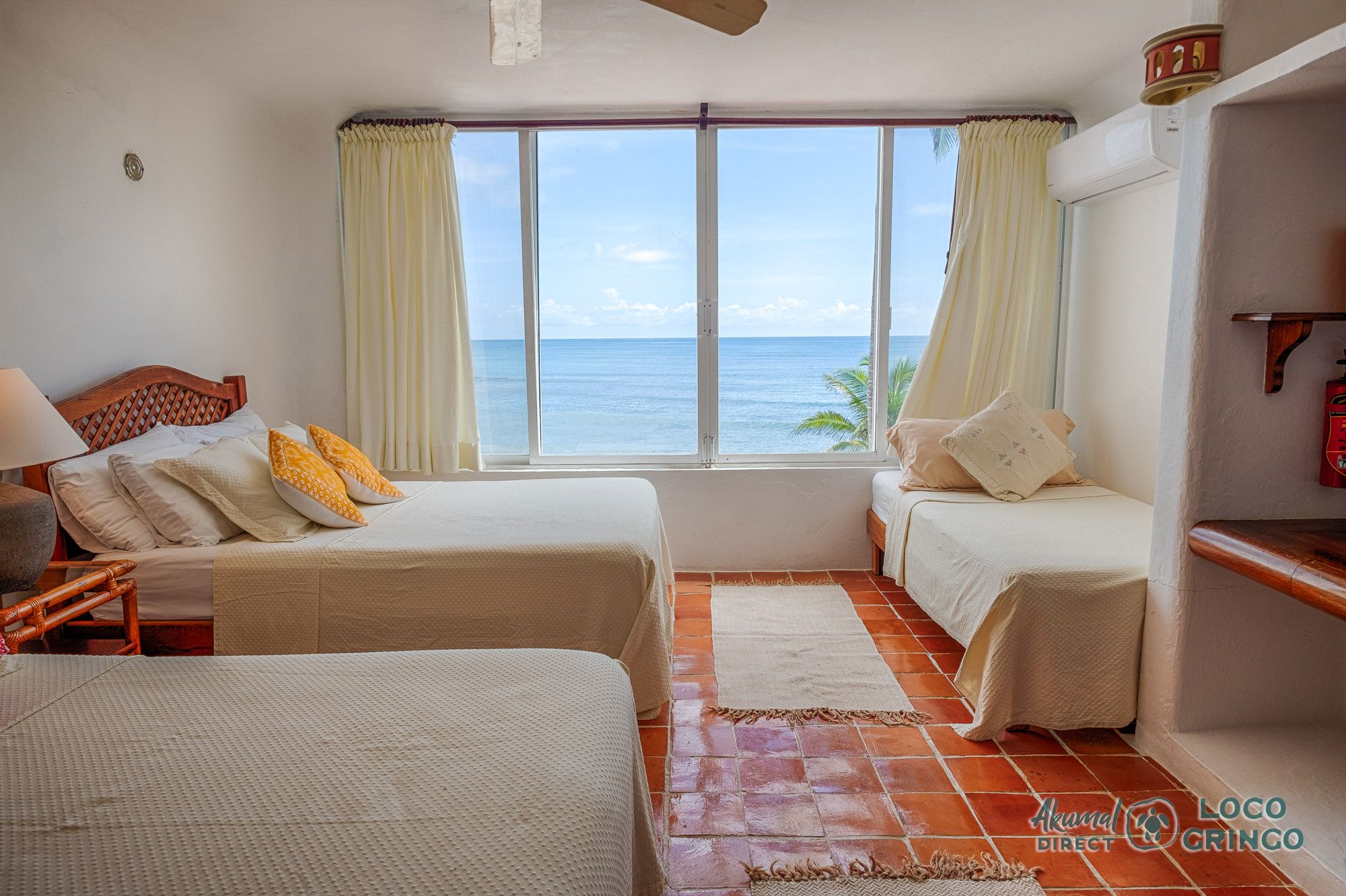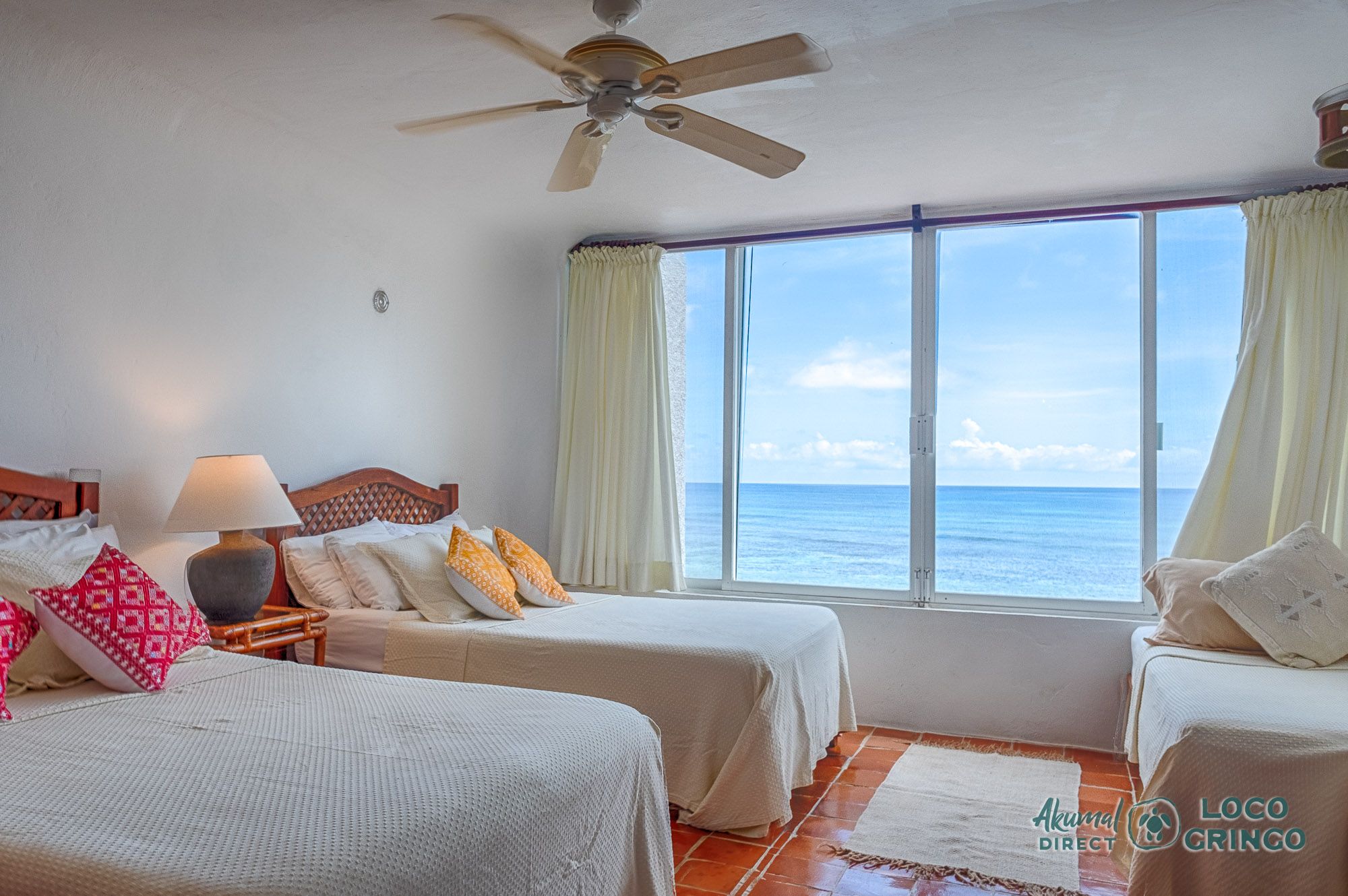 Villa Balam Ek Guest Bedroom with 2 double beds and a single bed